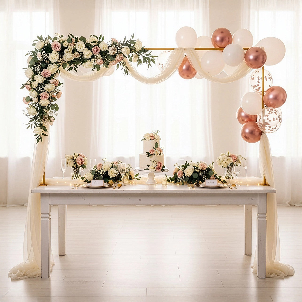 • Customisable Décor: Perfect for decorating with balloons, flowers, greenery, LED lights, garlands, tulle, and more.