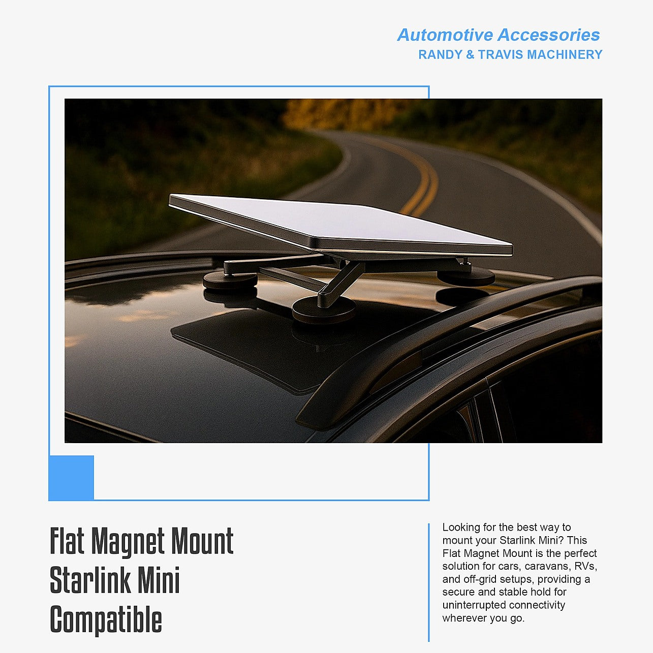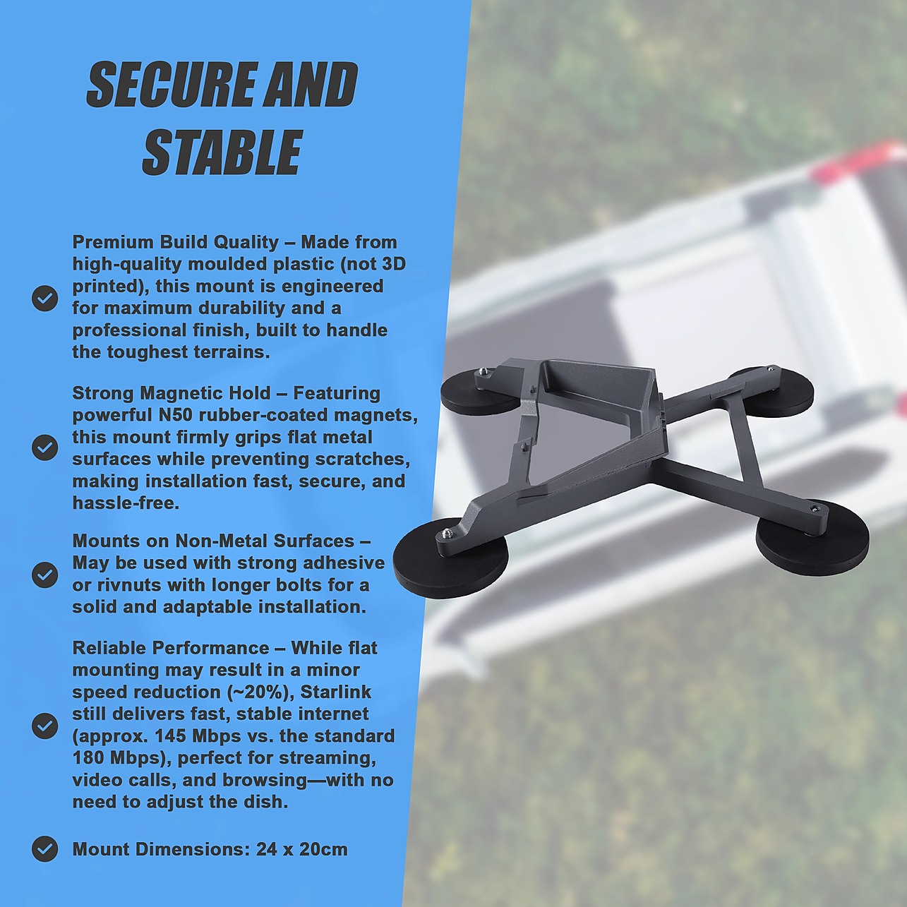 Starlink Mini Vehicle Magnet Mount – Flat Magnetic Base for Car, 4WD & RV