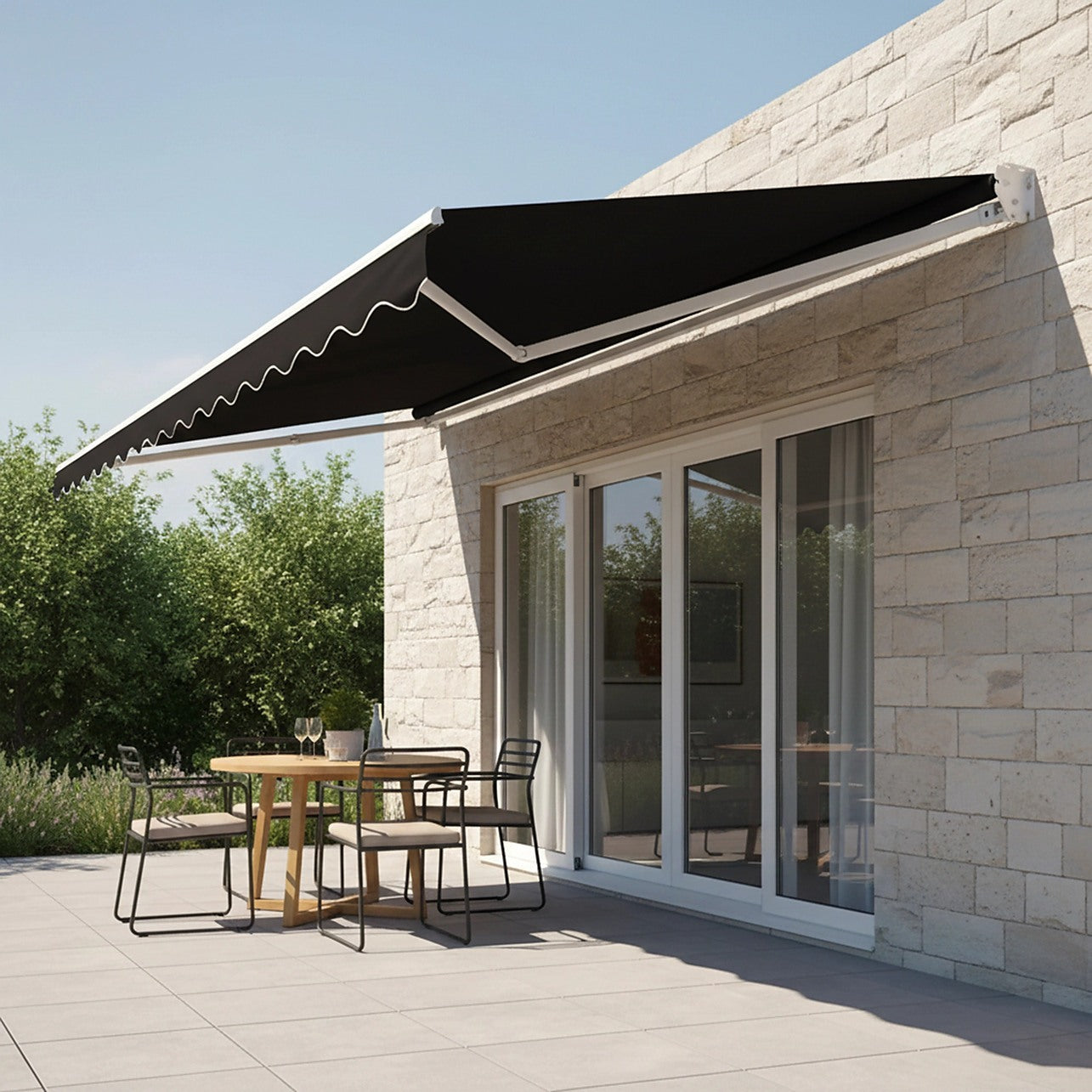 Outdoor Awning Black - 4x3m Retractable Sunshade
