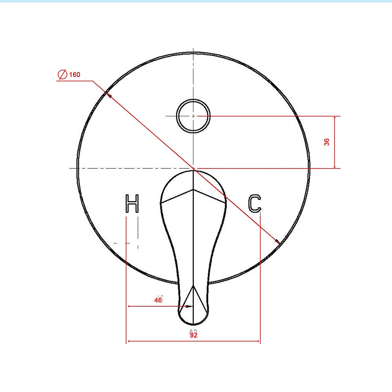 The diameter of this shower diverter is 160mm. This sturdy oval shower diverter is built to last. It has a 35mm cartridge and is equipped with a brass tap body, zinc handle and cover plate. A handy user"s manual is also included.