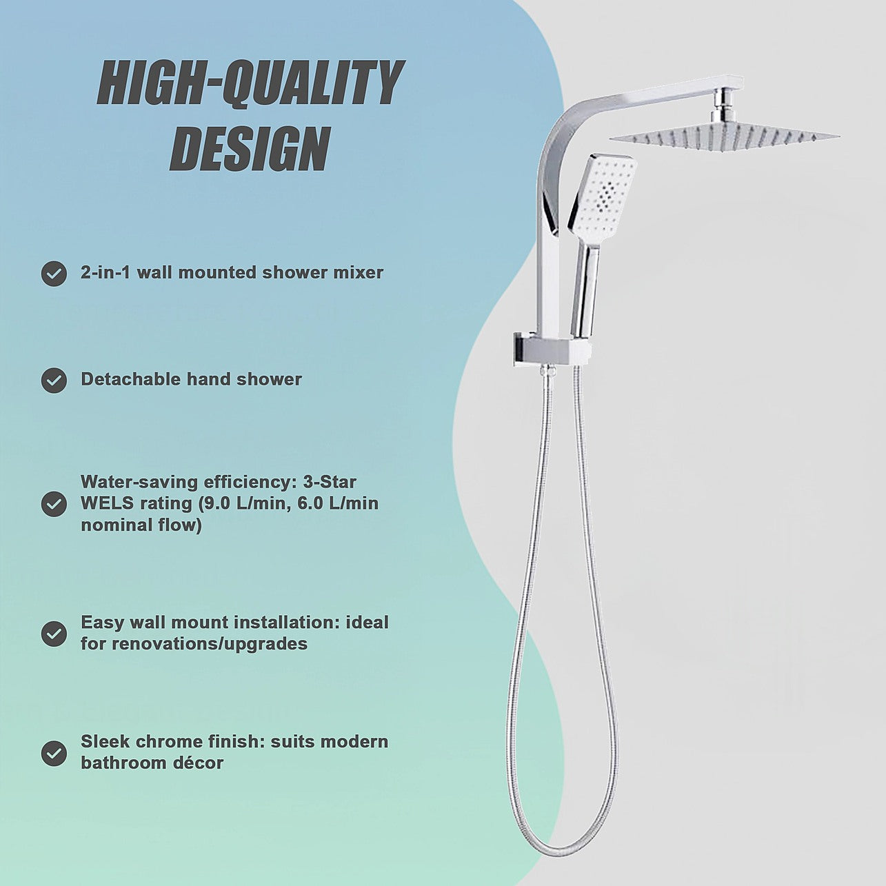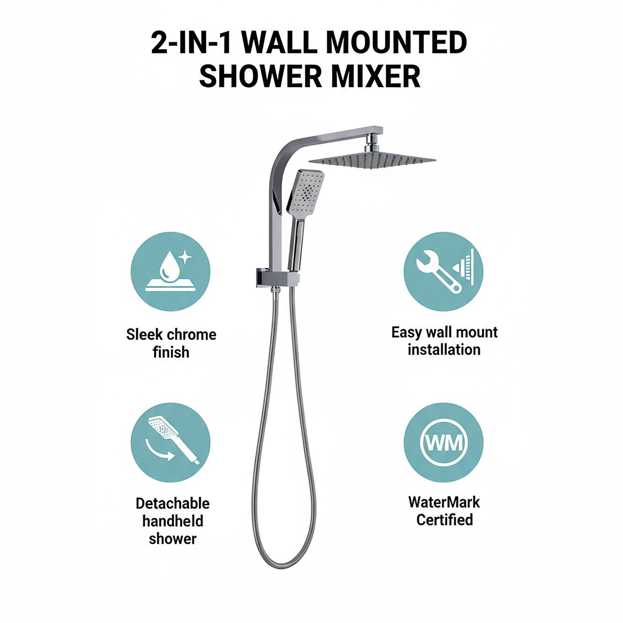 Transform your daily routine with the 2-in-1 Wall Mounted Shower Mixer with Rainfall and Handheld Massage Head by Della Francesca. Designed to combine style, functionality, and spa-like comfort, this premium dual shower system offers two luxurious experiences in one.