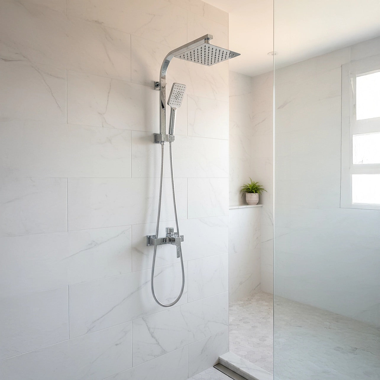 2-in-1 Design: Combines fixed rainfall shower and handheld massage head