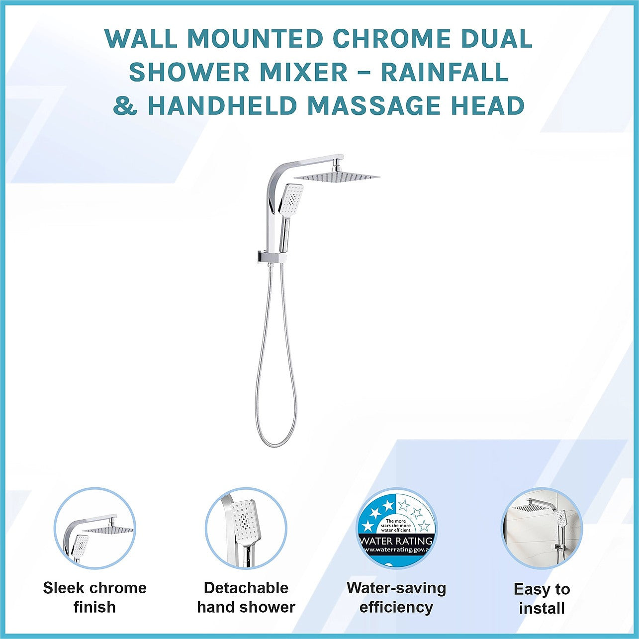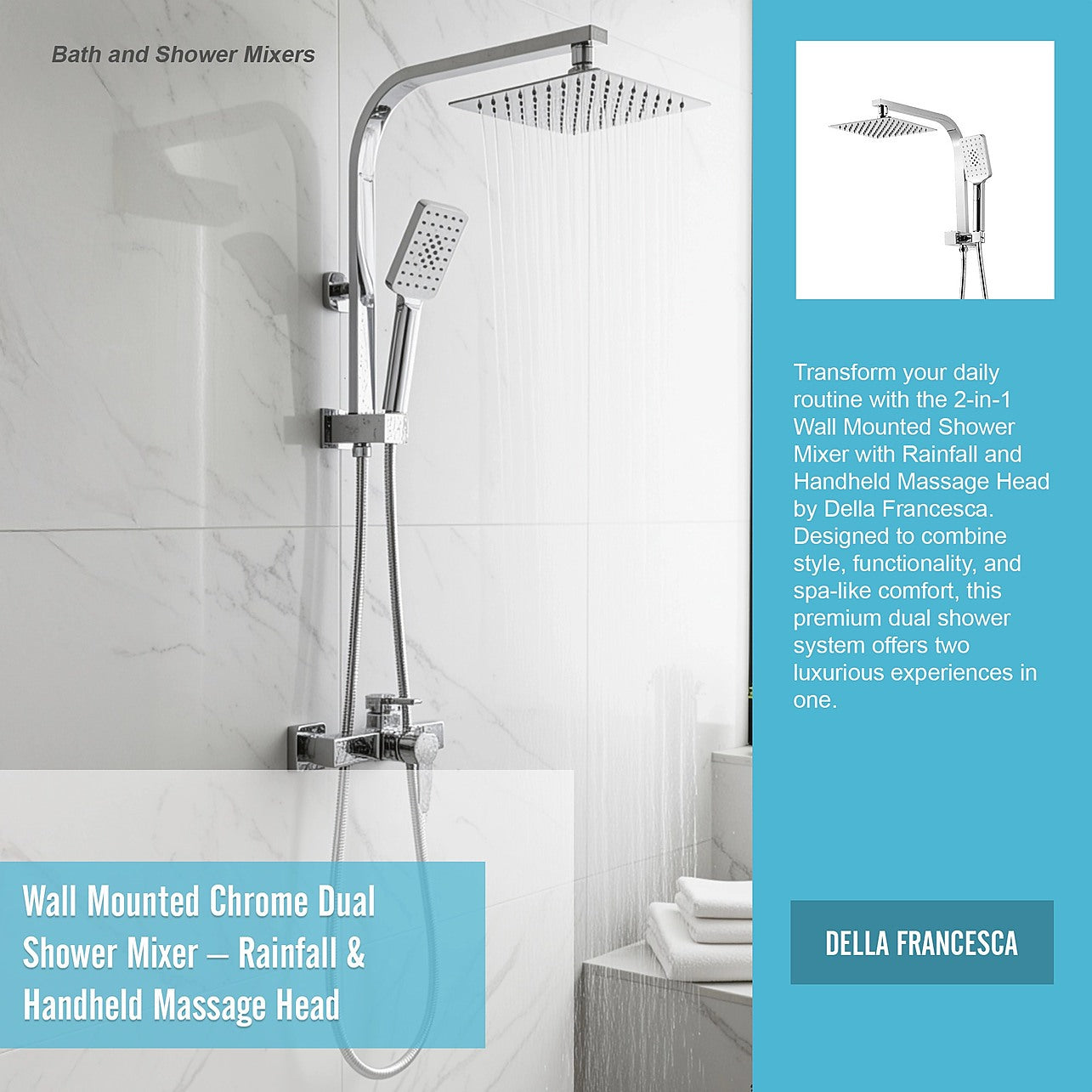 Wall Mounted Chrome Dual Shower Mixer – Rainfall & Handheld Massage Head