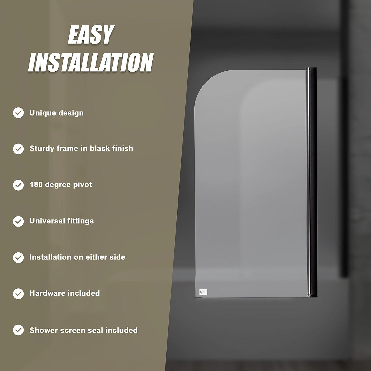 180° 80 x 140cm Pivot Door 6mm Safety Glass Bath Shower Screen – Black Modern Bathroom Style
