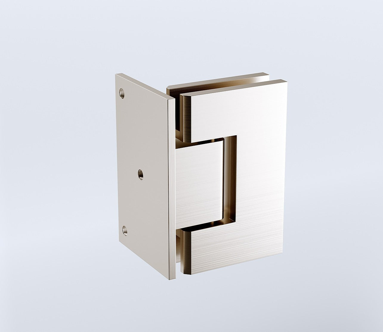 90° Brass Glass Shower Door L-Hinge in Brushed Nickel x 1