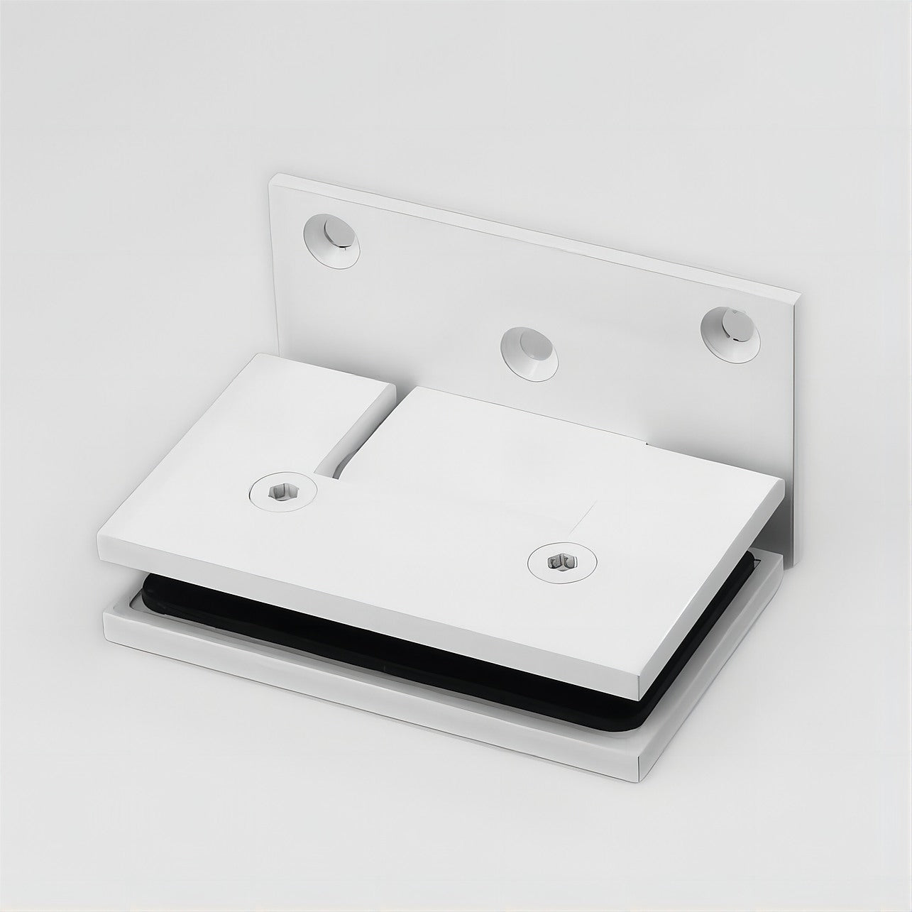 90° Brass Glass Shower Door L-Hinge in Matte White x 1