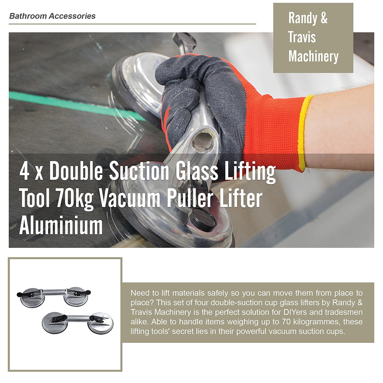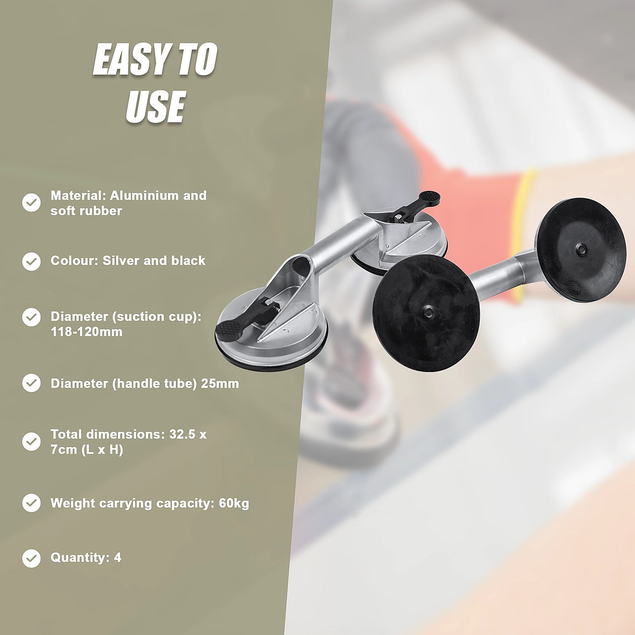 4 x Double Suction Glass Lifting Tool 70kg Vacuum Puller Lifter Aluminium