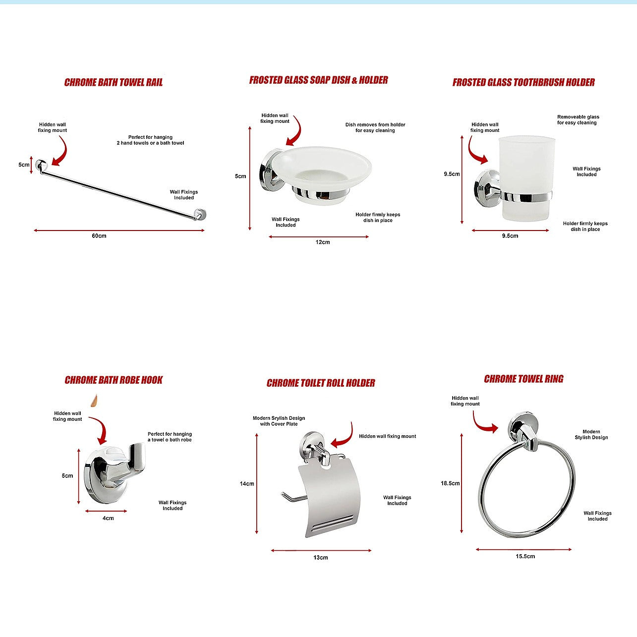 Bathroom Accessories Set 6 Piece Pack Chrome Wall Mounted Easy Fittings