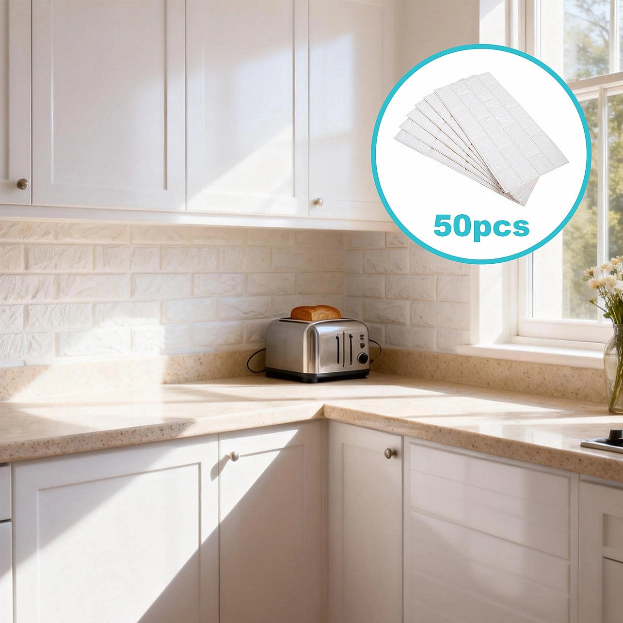3D Brick Wall Tile Stickers 60x30cm – 50 Pack Peel & Stick Wallpaper Panels for Home Décor