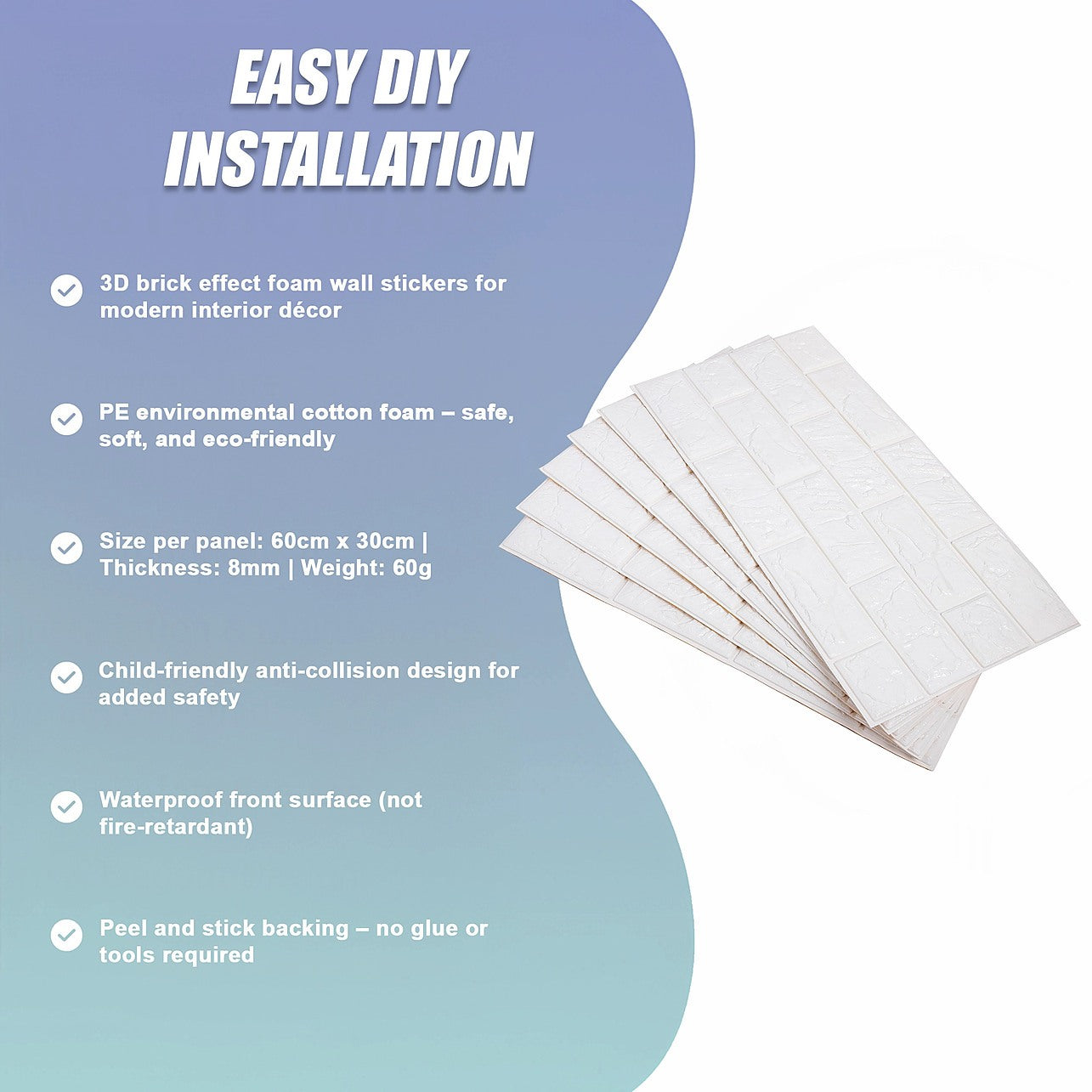 - Peel and stick backing – no glue or tools required