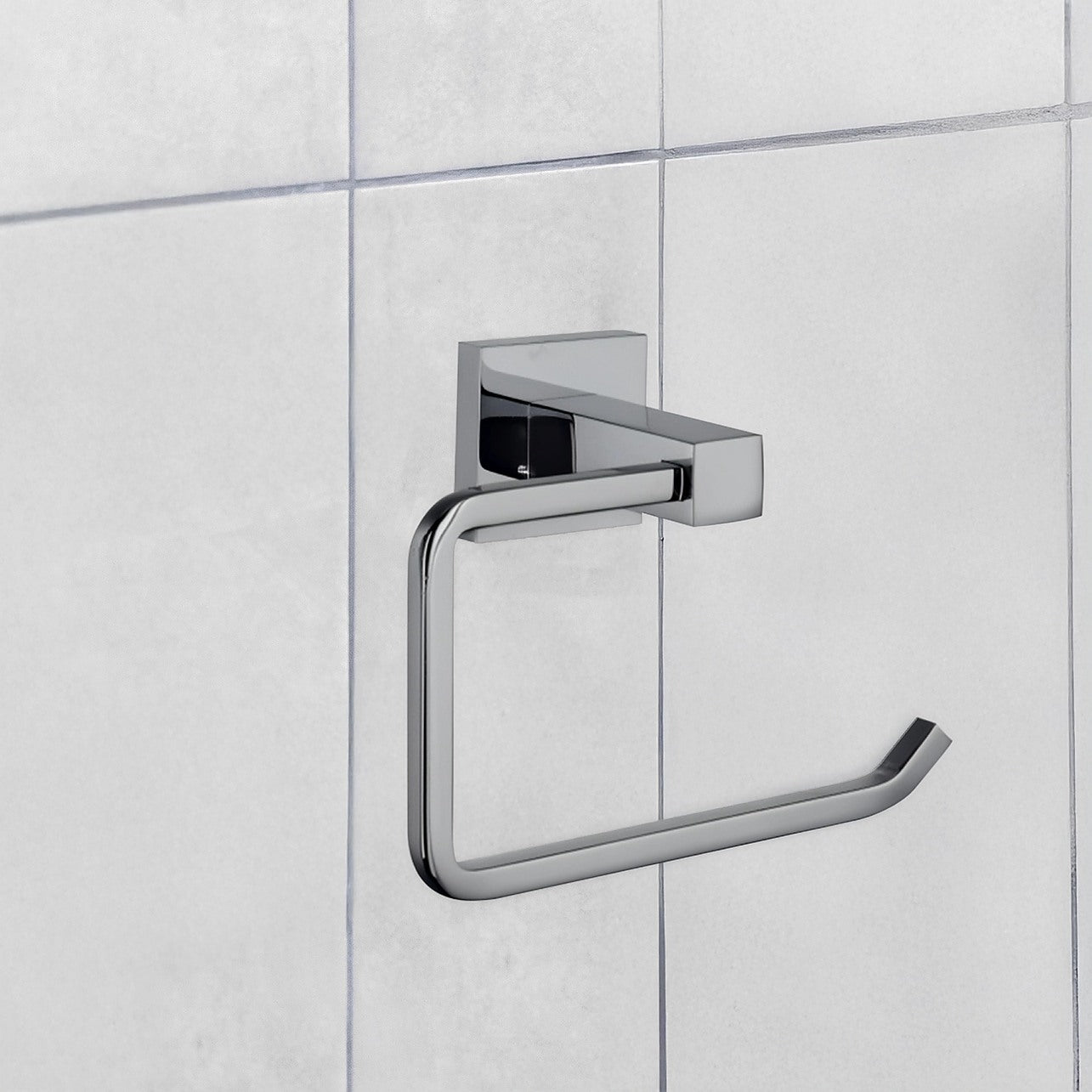 This toilet paper holder has a brilliant chrome finish. A simple hook design keeps the toilet paper on the holder without the need for a spring roller. A modern sleek design is built to last and updates any bathroom.