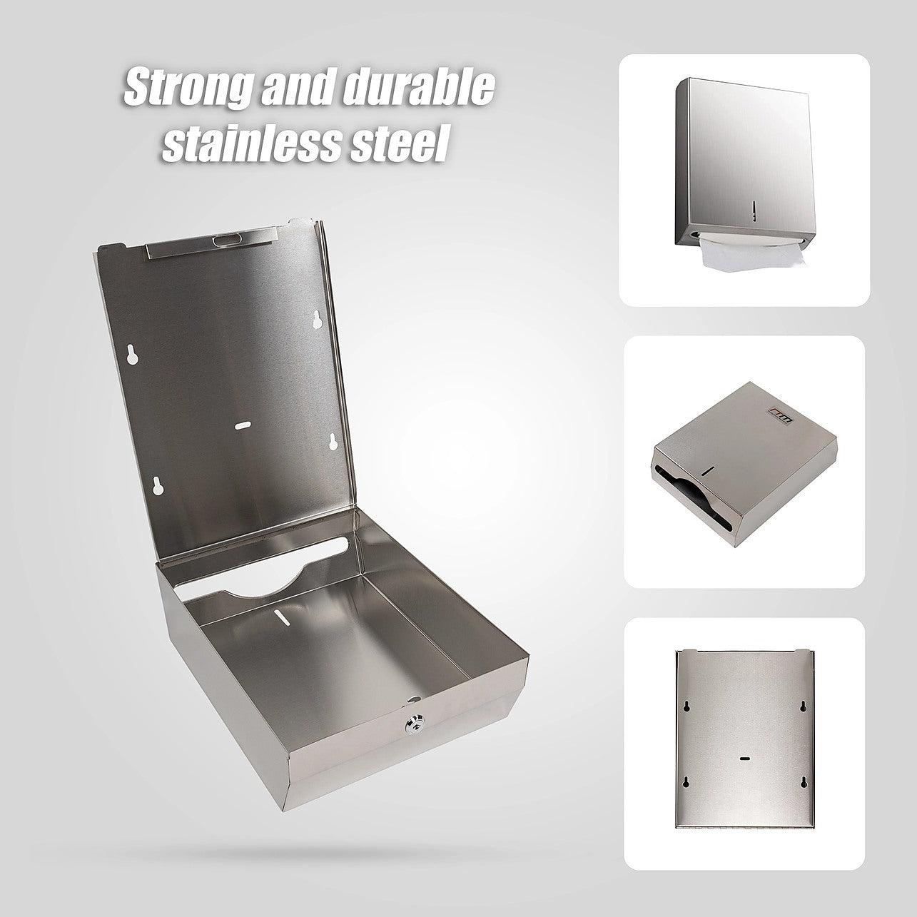 Made from brushed 201 stainless steel, this dispenser is thicker, easy to clean, and resistant to rust, providing long-lasting use. Polished edges and corners ensure hands and tissues are protected from scratches.The wall-mounted design includes all necessary hardware for easy installation. This dispenser accommodates up to 400 c-fold, tri-fold, z-fold, multi-fold, and m-fold paper towels.