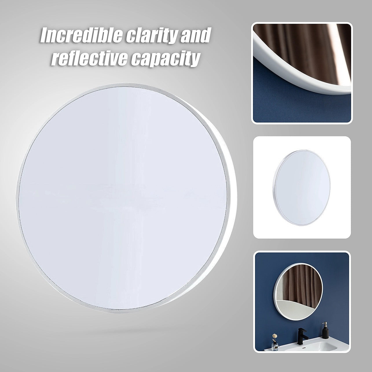• Material: MDF, silver plating, high quality powder coated finish and mirror-grade glass