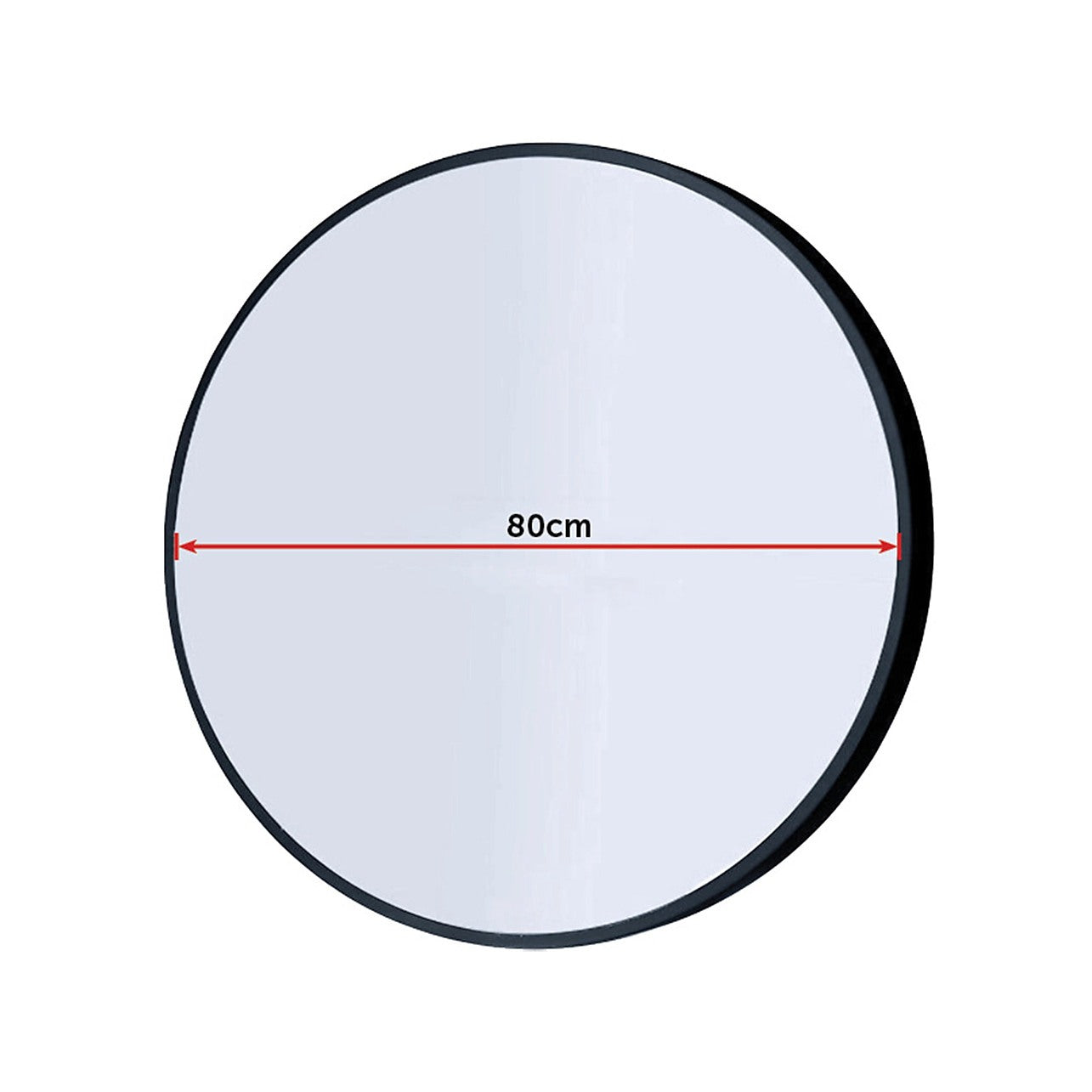 80cm Round Wall Mirror Bathroom Mirror – Black Frame for Home or Vanity