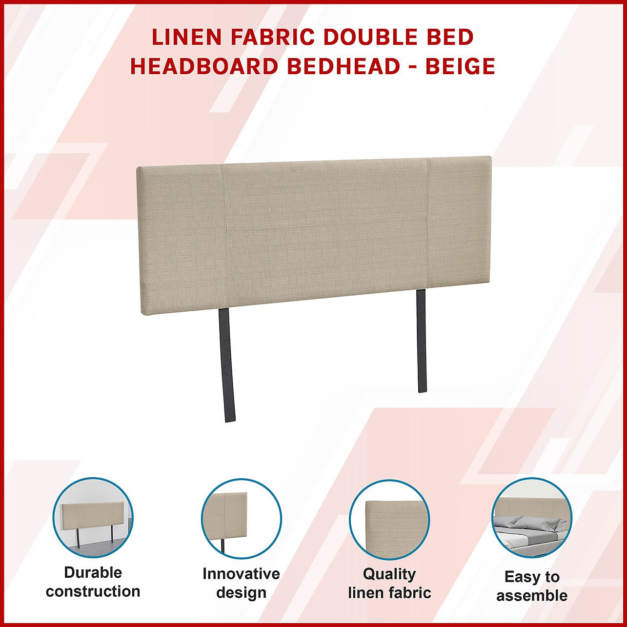 This headboard for standard Double-sized bed frames is created with quality materials, including easy-to-maintain Linen Fabric that will maintain its sophisticated look for many years to come. This particular model comes with elegant stitching accents that provide just the right level of understated pop. A neutral beige will blend seamlessly with a wide variety of bed frames and other bedroom furniture.