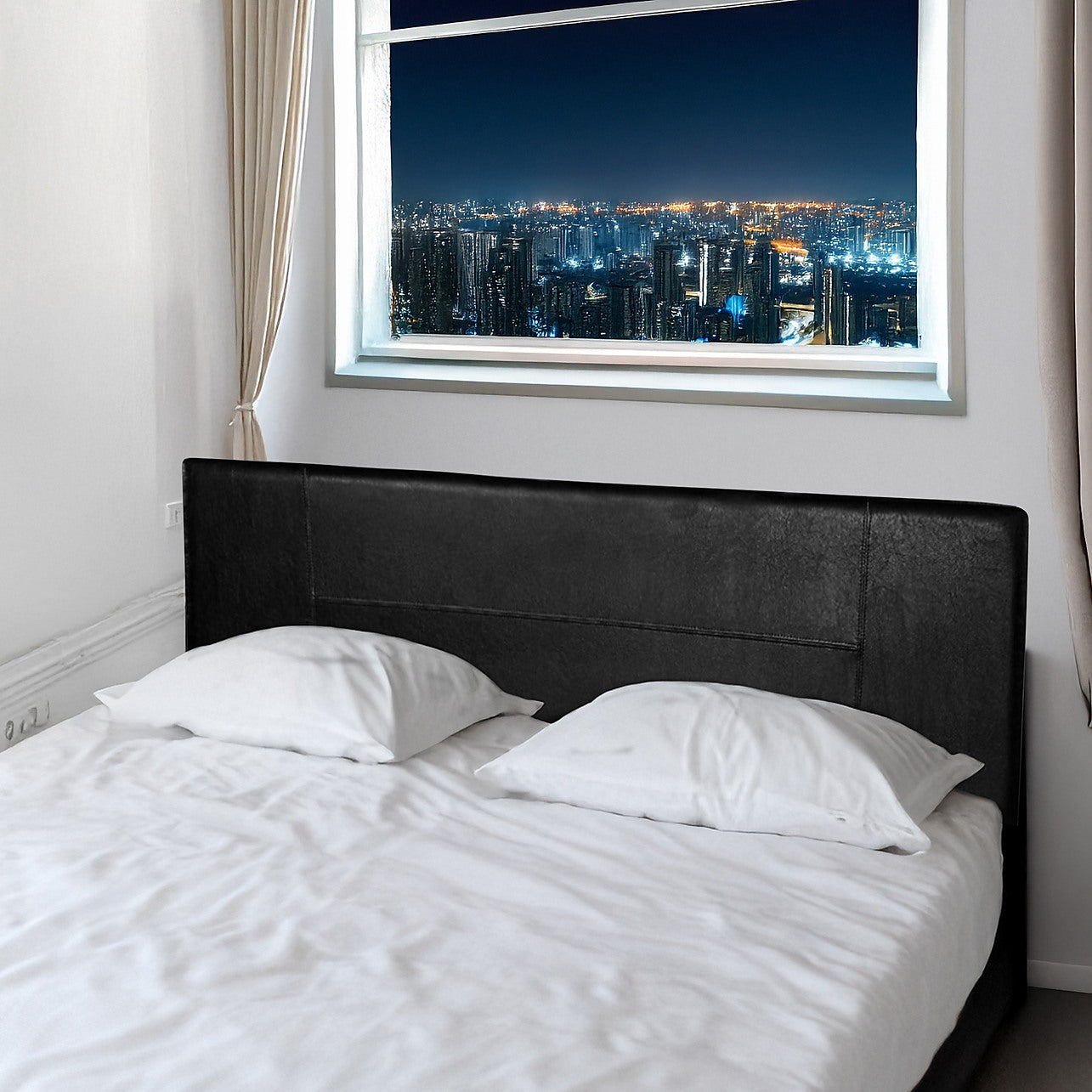 King Headboard with Legs – Upholstered Black PU Leather, Minimalist Bedhead