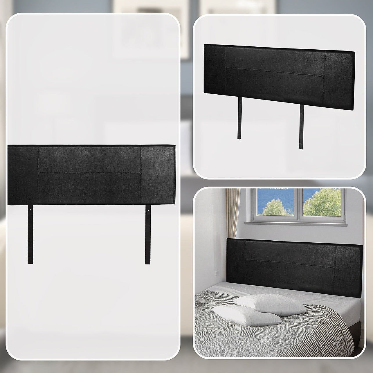 Queen Headboard with Legs – Upholstered Black PU Leather, Minimalist Bedhead