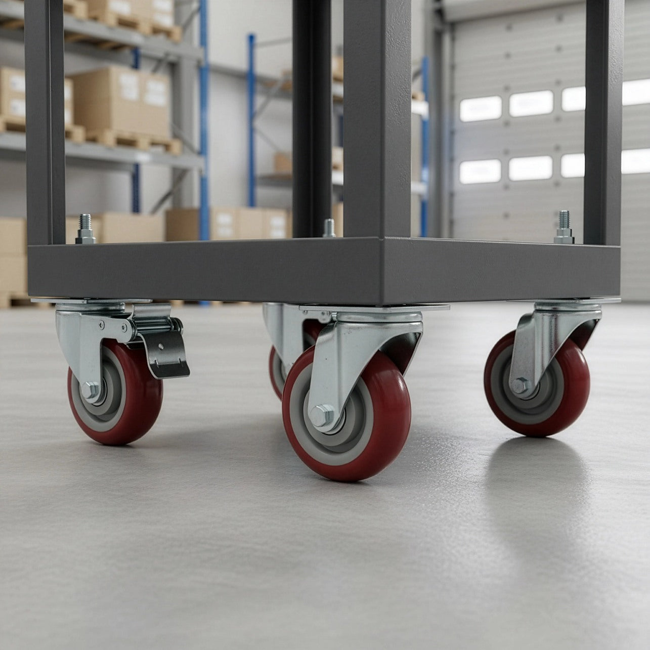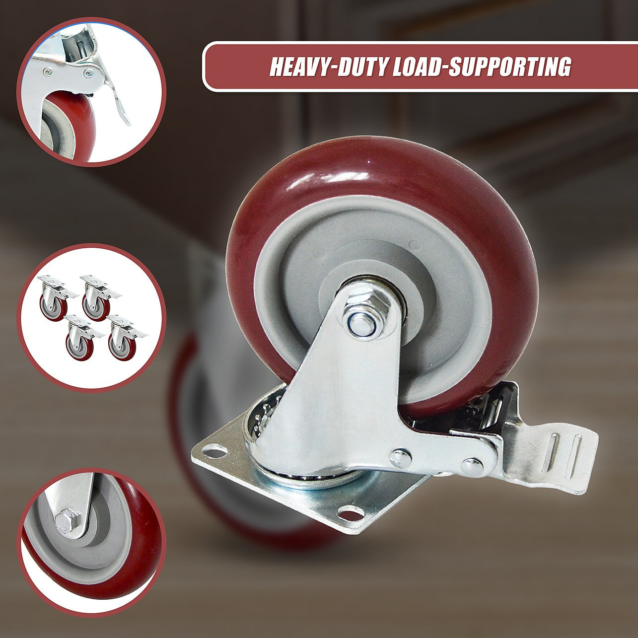 - Quantity: 4 wheels: 2 with foot pedal locking brake, 2 without brake.