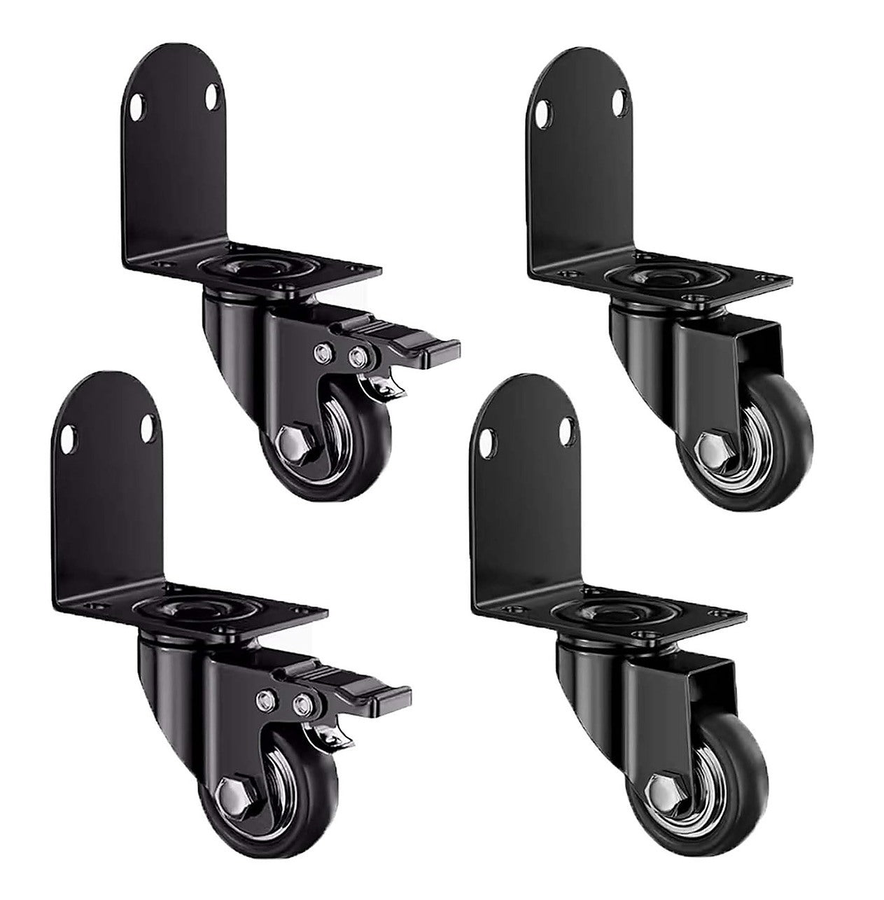 Upgrade your furniture and trolley mobility with these heavy duty 2 inch side mount caster wheels. Designed with durable PVC wheels and a thickened L-shaped steel bracket, this set of 4 delivers smooth 360° swivel movement, reliable braking and strong load capacity for everyday use.