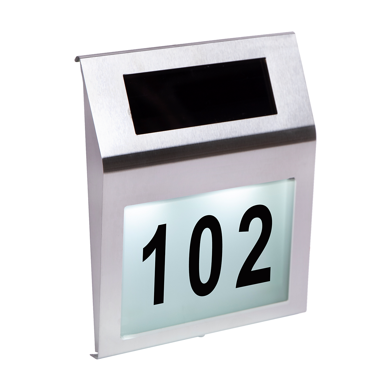 Solar Powered House Number LED Light Stainless Steel Address Signs Plaques
