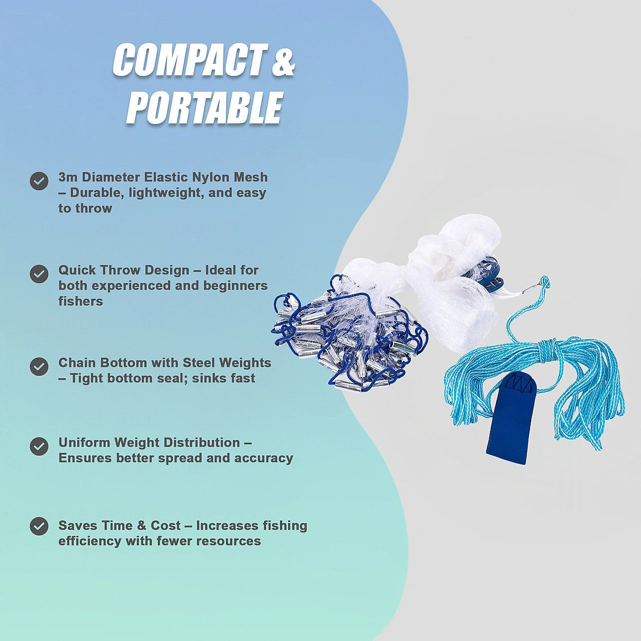 - Quick Throw Design – Ideal for both experienced and beginners fishers
