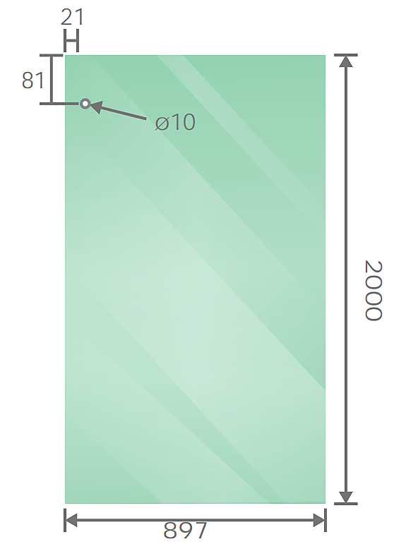 Tailored for a frameless shower screen featuring a sliding door, glass screen for the side panel showcases 10mm clear toughened glass with 2mm radius corners and polished edges. All measurements are in millimeters, and the panels come pre-drilled to seamlessly fit various styles of shower hardware.
