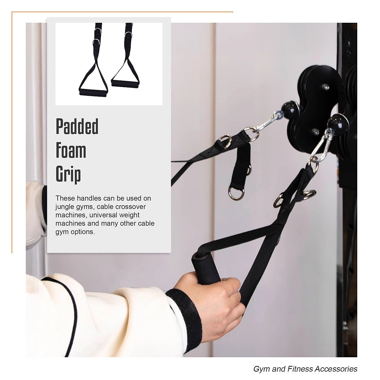 The Single Padded Stirrup Handle is an excellent addition to any gym cable machine, designed with a padded foam grip for enhanced comfort and secure handling. These handles can be used on jungle gyms, cable crossover machines, universal weight machines and many other cable gym options.
