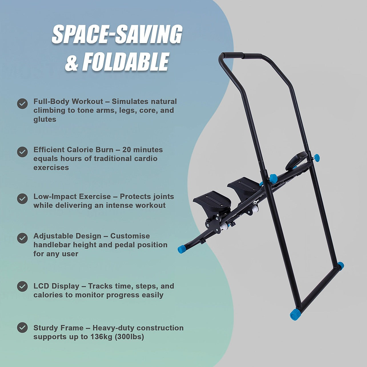 - Full-Body Workout – Simulates natural climbing to tone arms, legs, core, and glutes