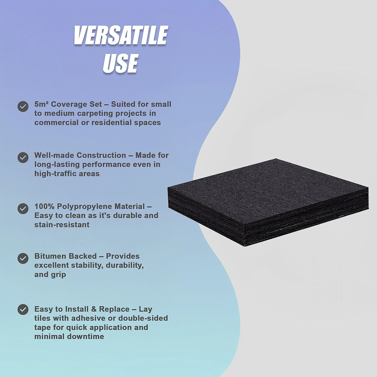 5m² Black Carpet Tiles Set – Commercial & Home Flooring for Office, Retail & Living Areas