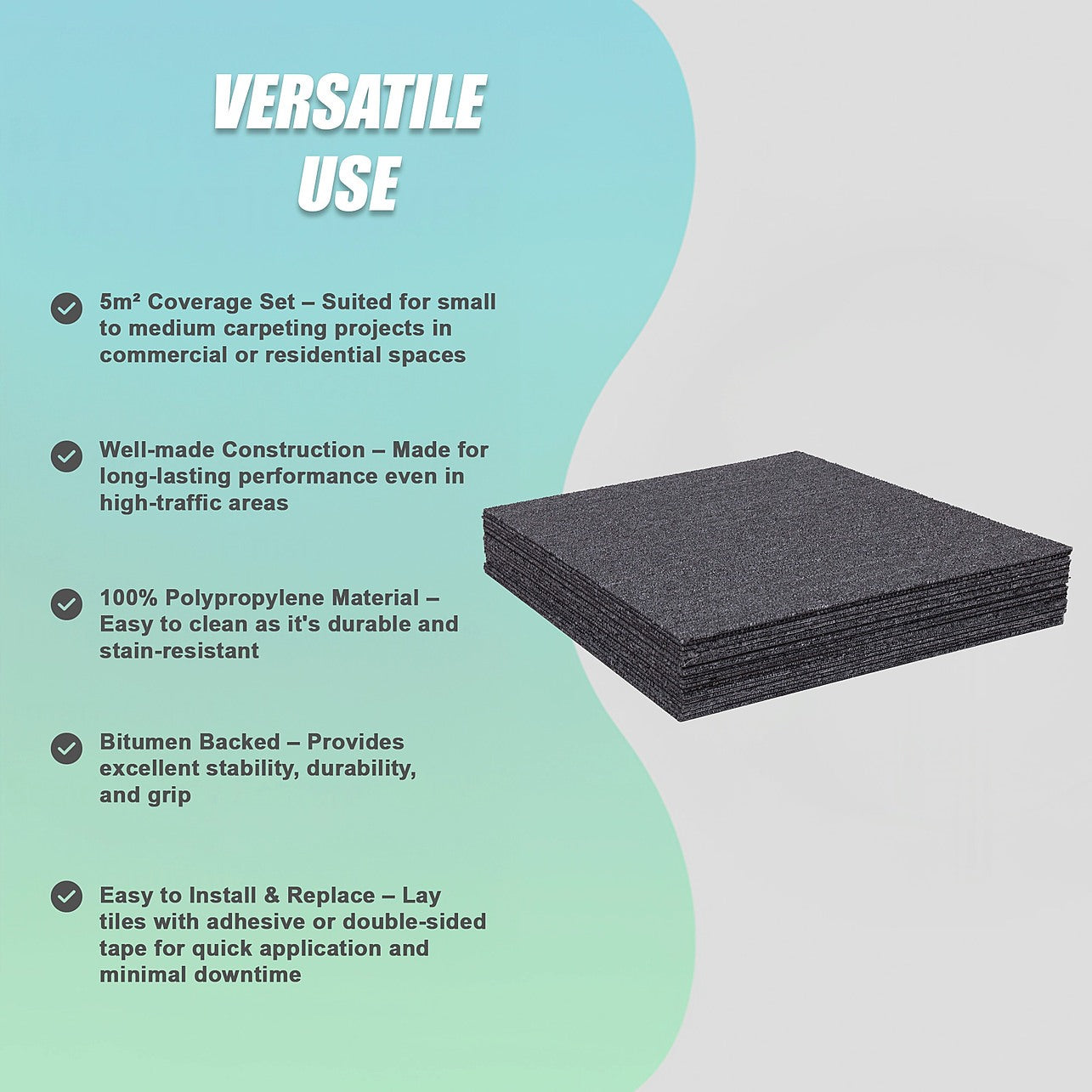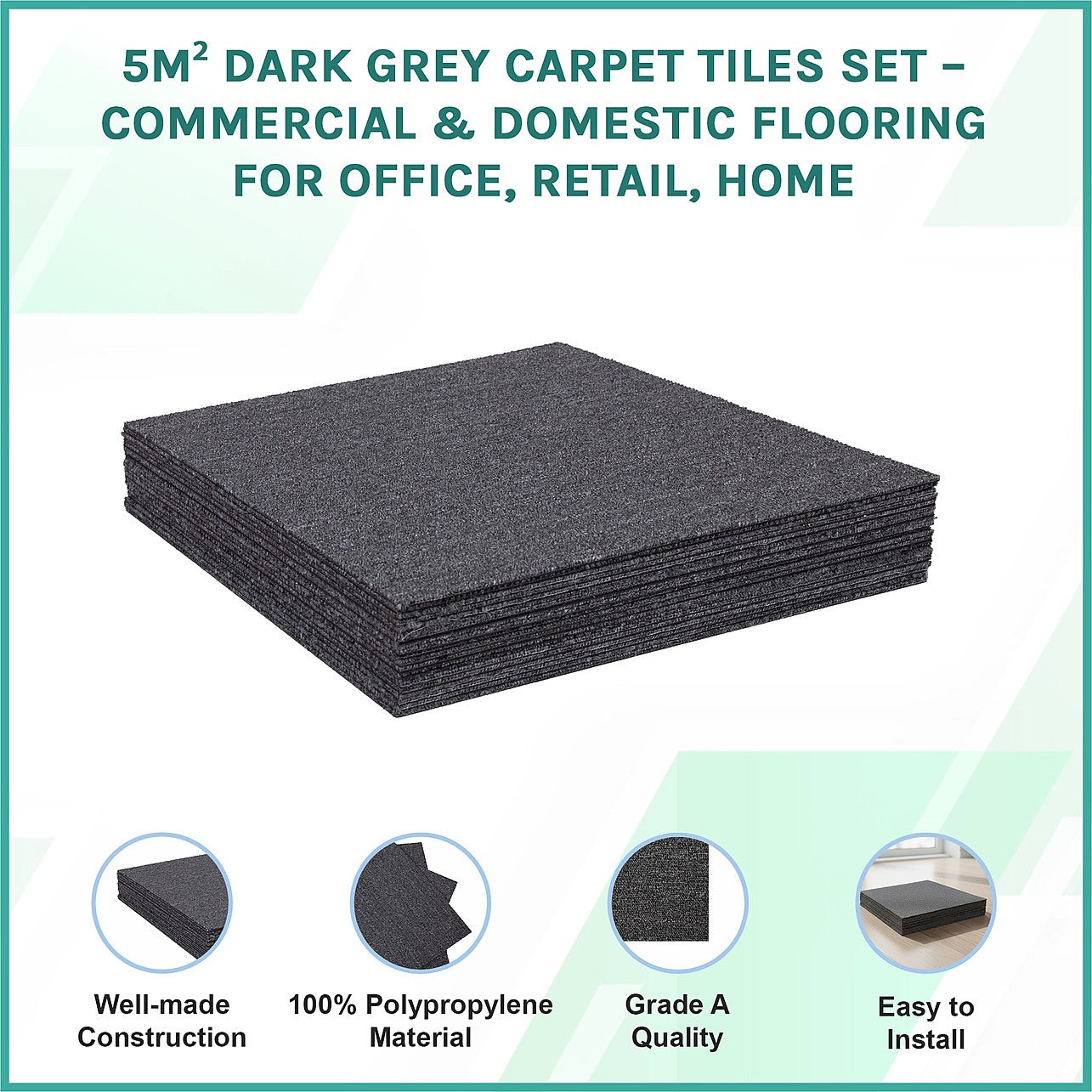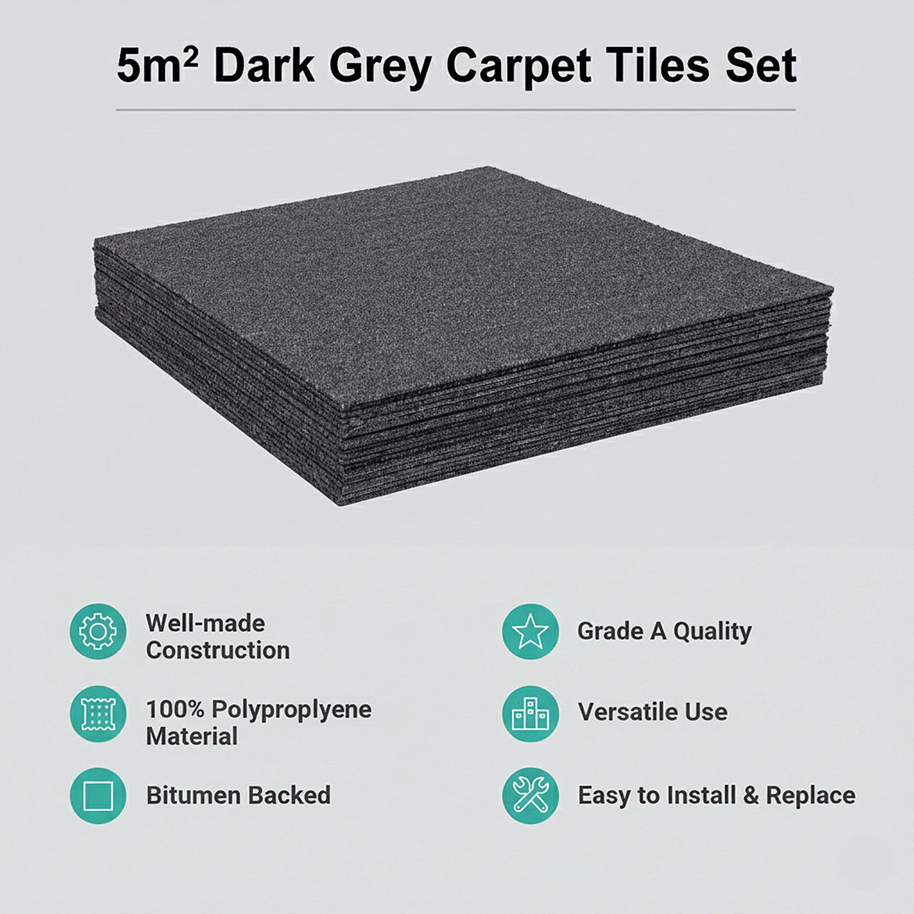 5m² Dark Grey Carpet Tiles Set – Commercial & Home Flooring for Office, Retail & Living Areas