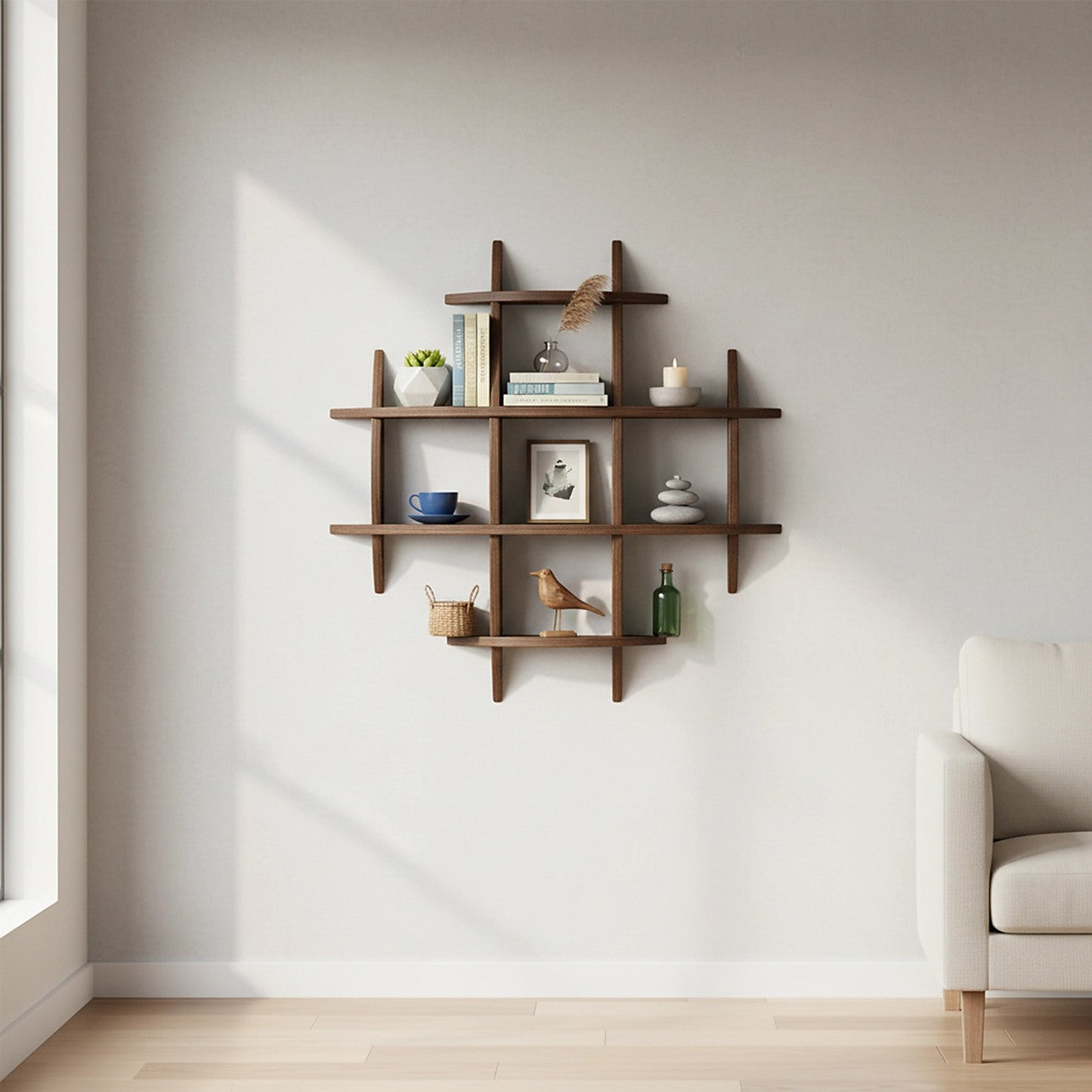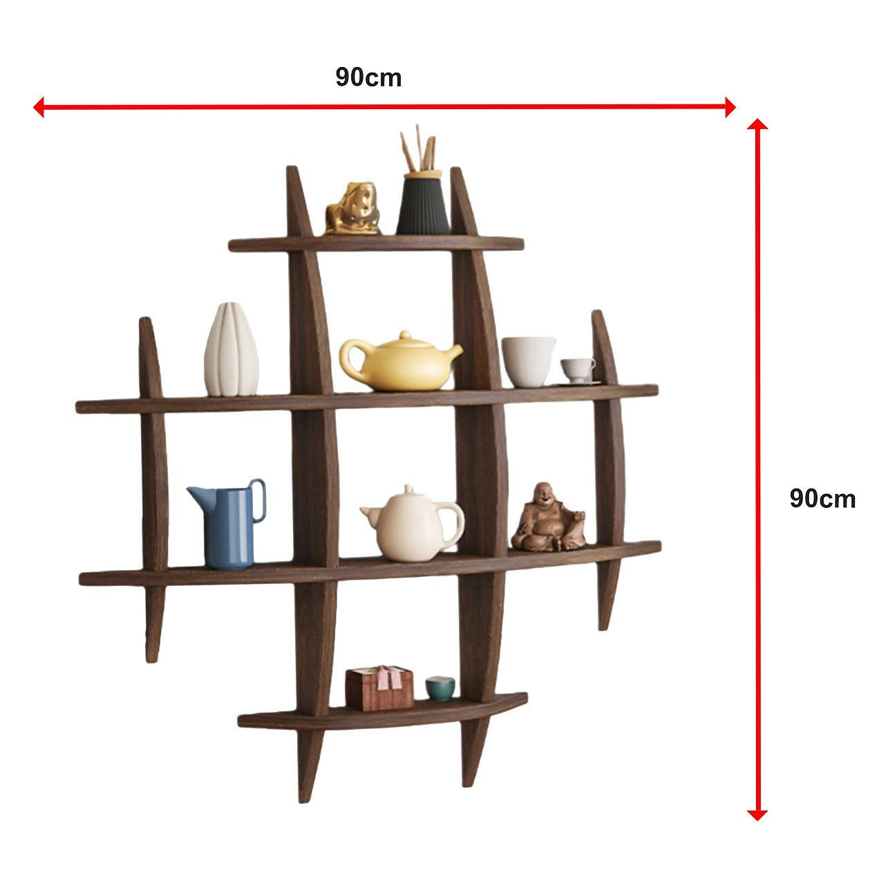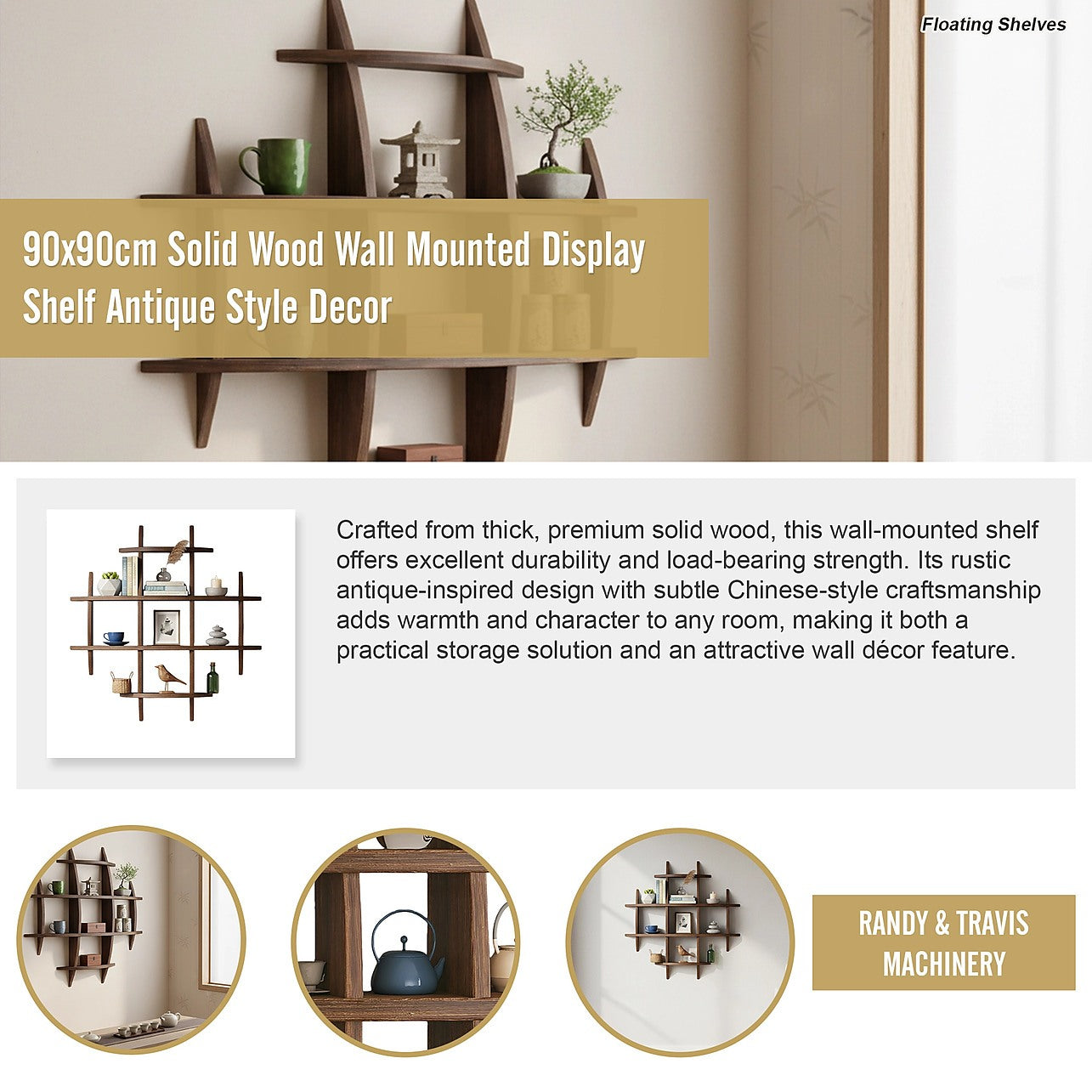 90x90cm Solid Wood Wall Mounted Display Shelf in Antique Style for Home Décor