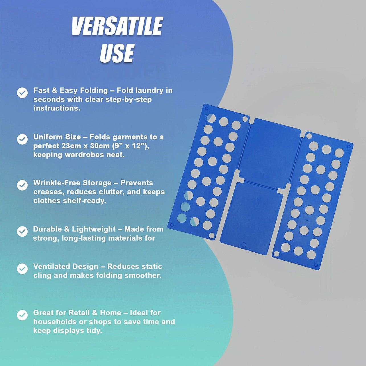 - Uniform Size – Folds garments to a perfect 23cm x 30cm (9” x 12”), keeping wardrobes neat.
