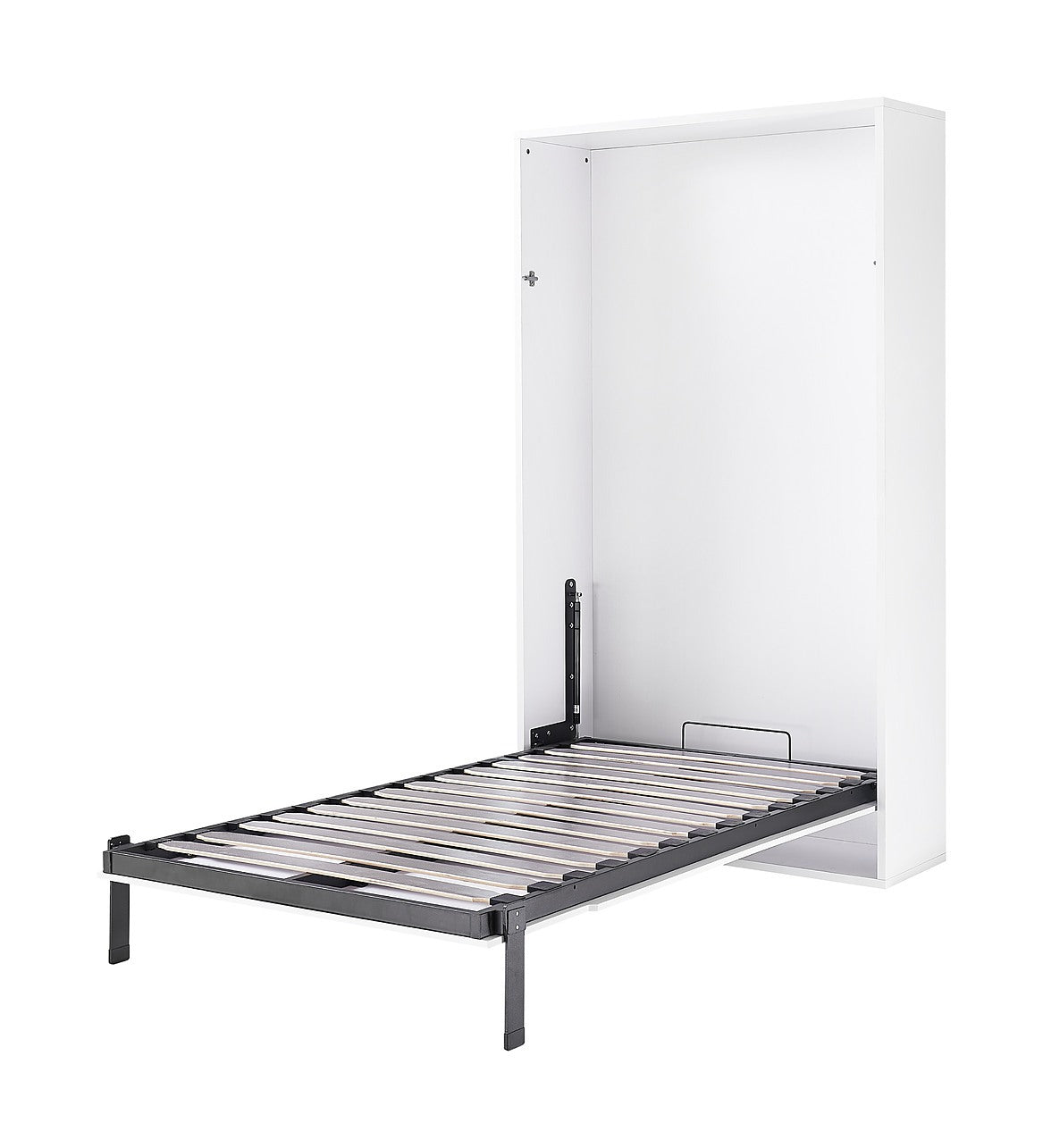 King-single Wall Bed in White Gloss – Space Saving Murphy Bed Kit with Gold Door Handle