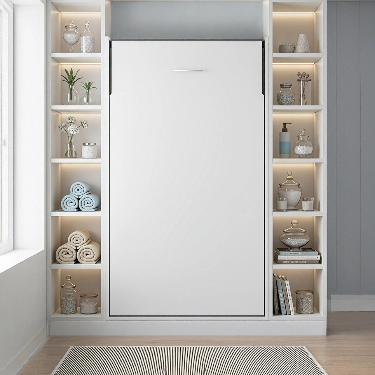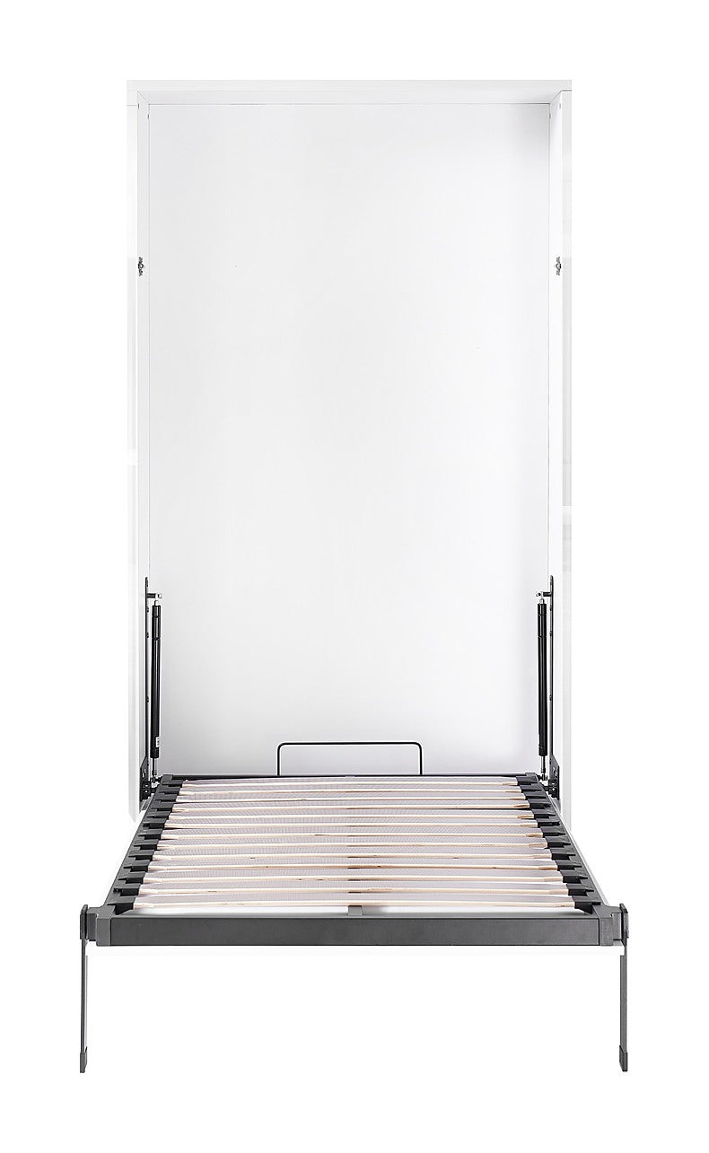 Single Wall Bed in White Gloss – Space Saving Murphy Bed Kit with Silver Door Handle