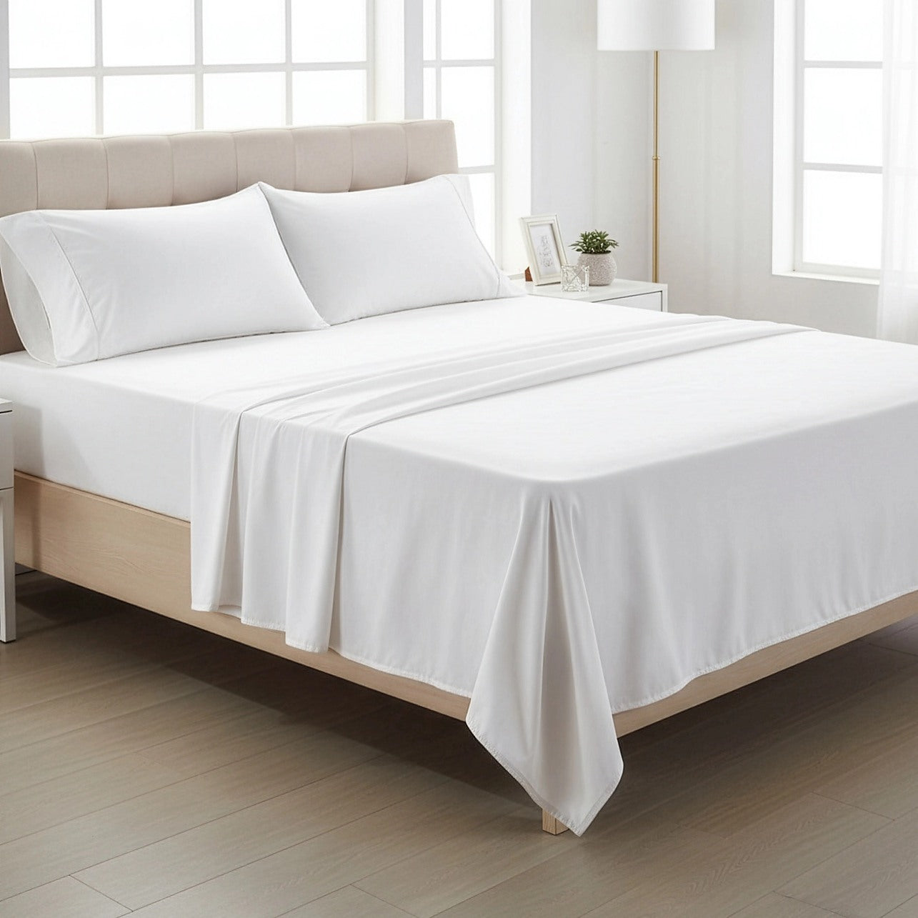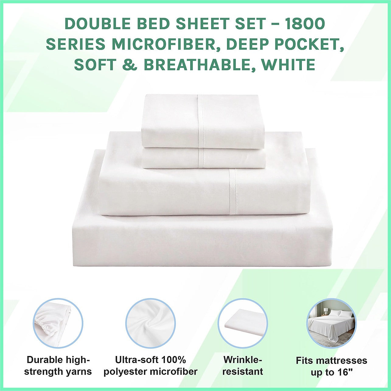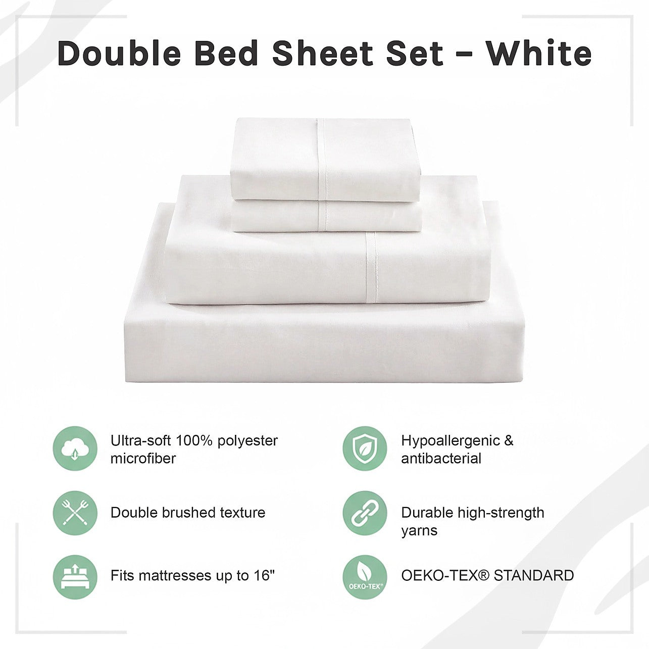Double Bed Sheet Set – Soft 1800 Series Microfibre with Deep Pockets in White