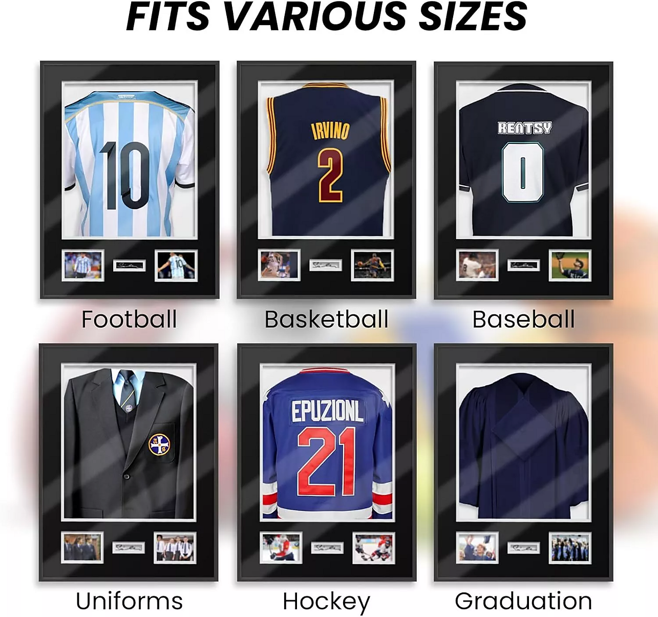 - Large dimensions (60 x 80 x 2.5cm) accommodate most sports jerseys, including baseball, basketball, football, soccer, and hockey.
