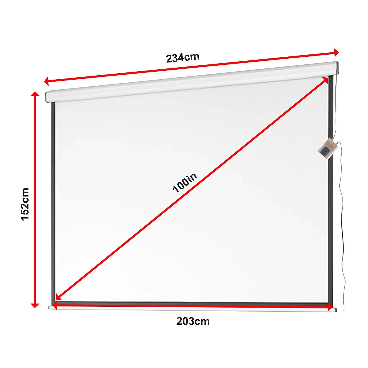 100" Electric Motorised Projector Screen – Wall/Ceiling Mount, Remote Control