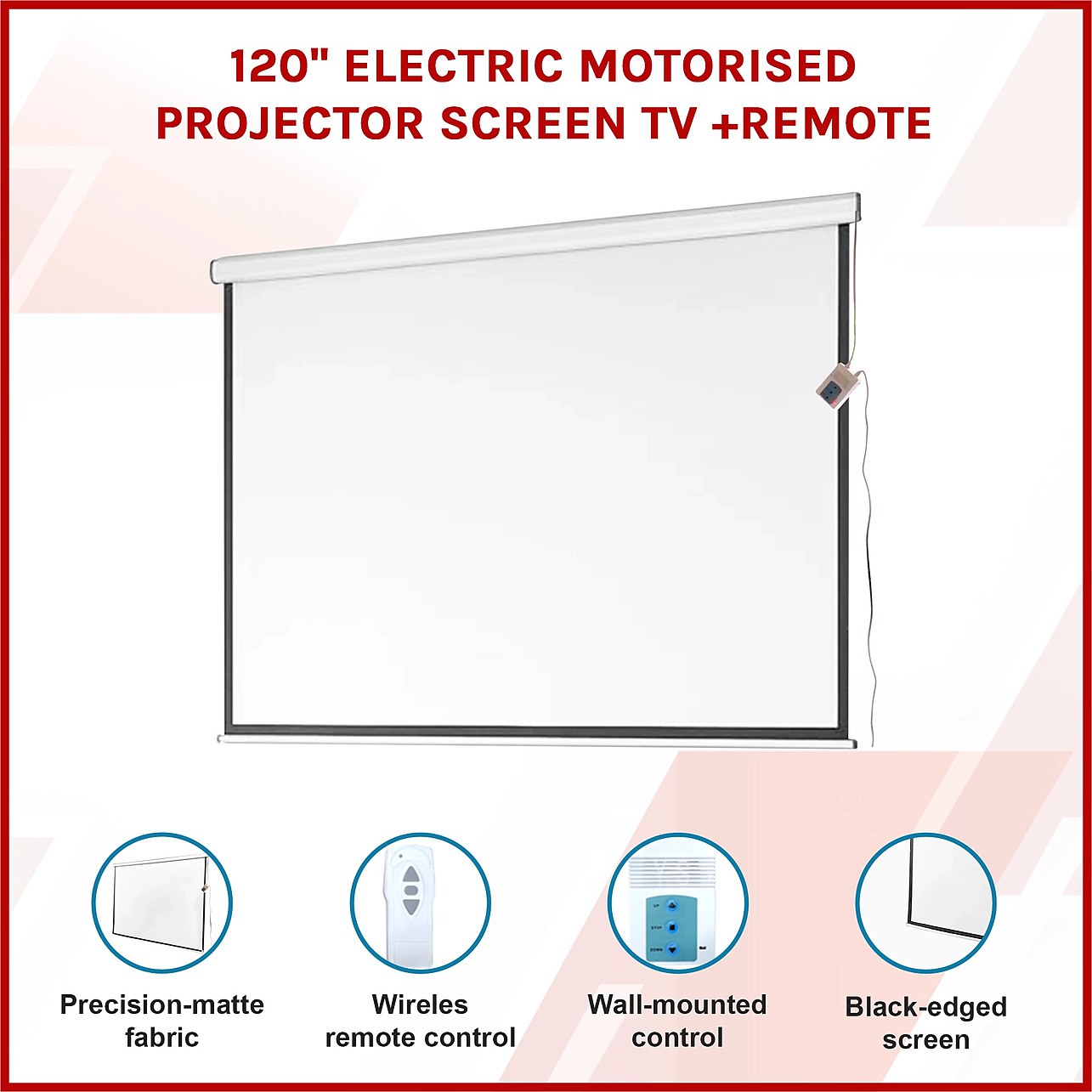 120" Electric Motorised Projector Screen – Wall/Ceiling Mount, Remote Control