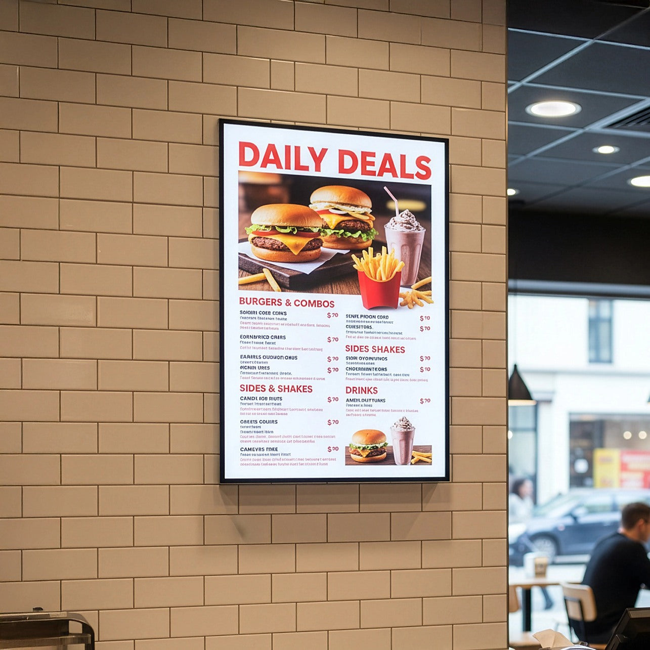 Illuminate your brand with the sleek and modern A1 LED Slim Advertising Lightbox Sign by Randy & Travis Machinery. Perfect for restaurants, bars, takeaways, and retail spaces, this ultra-thin lightbox brings a contemporary edge to any environment. Utilizing cutting-edge LED technology, it offers a luminous, cost-effective, and durable alternative to traditional lighting, ensuring your advertisements and menus truly stand out.
