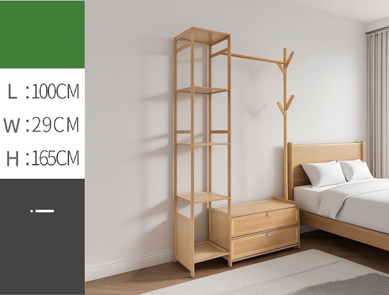 165x100cm Bamboo Clothes Rack Stand with Storage Shelves – Freestanding Garment Organiser in Wood