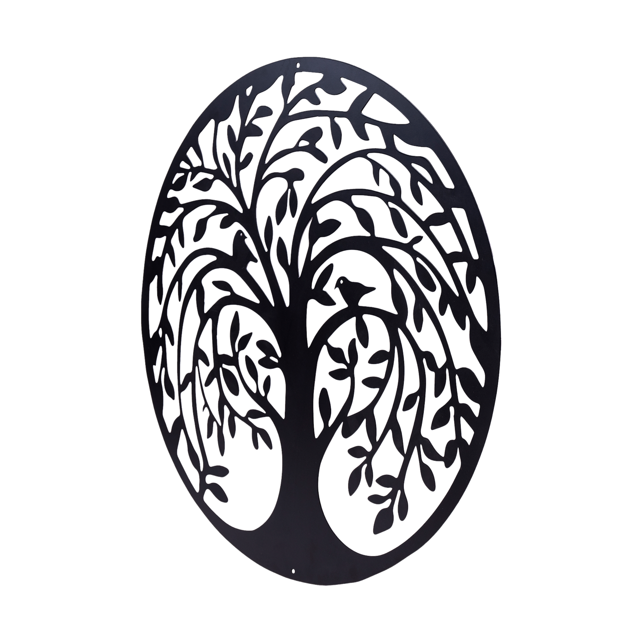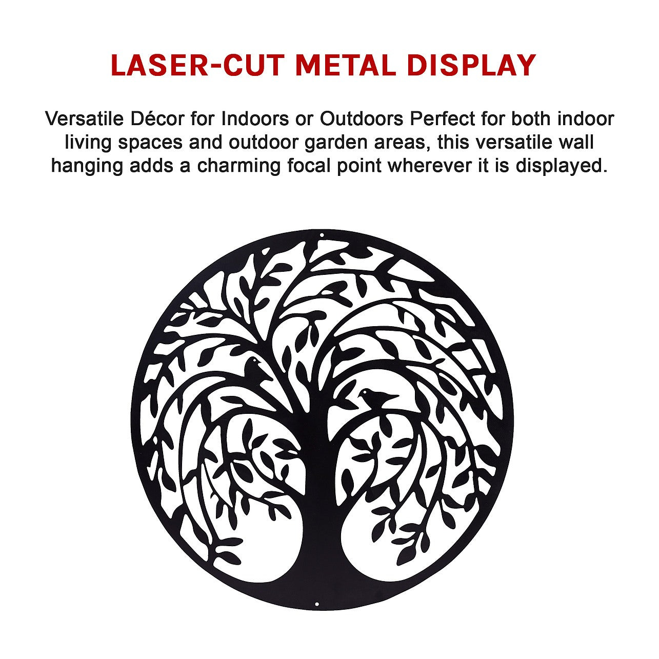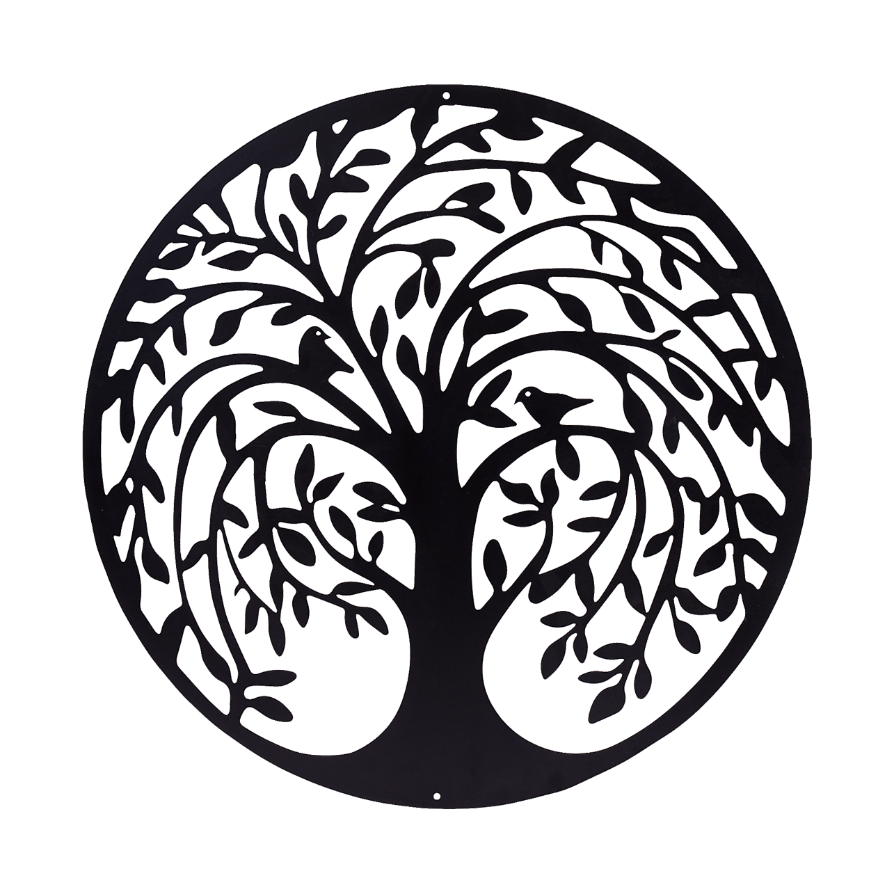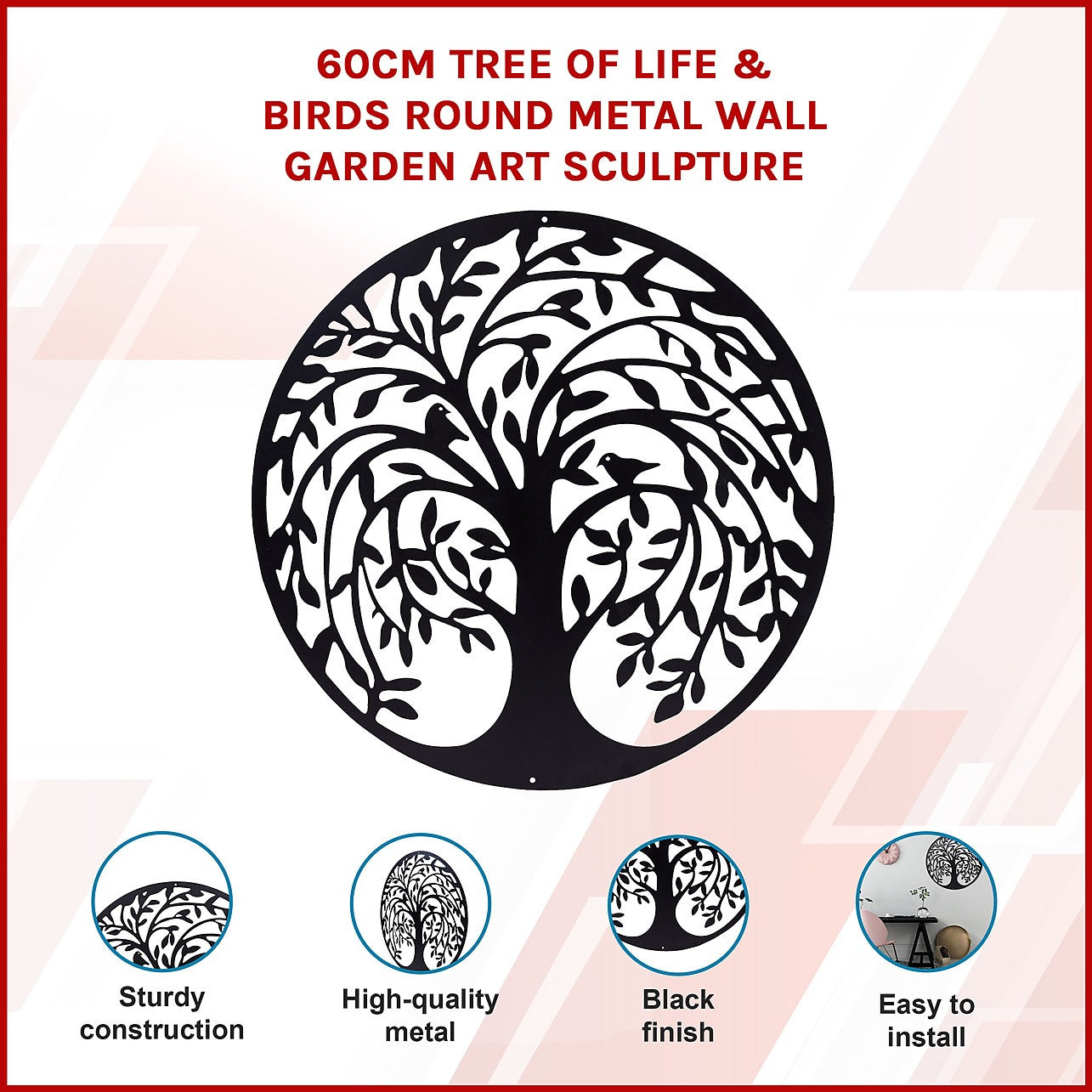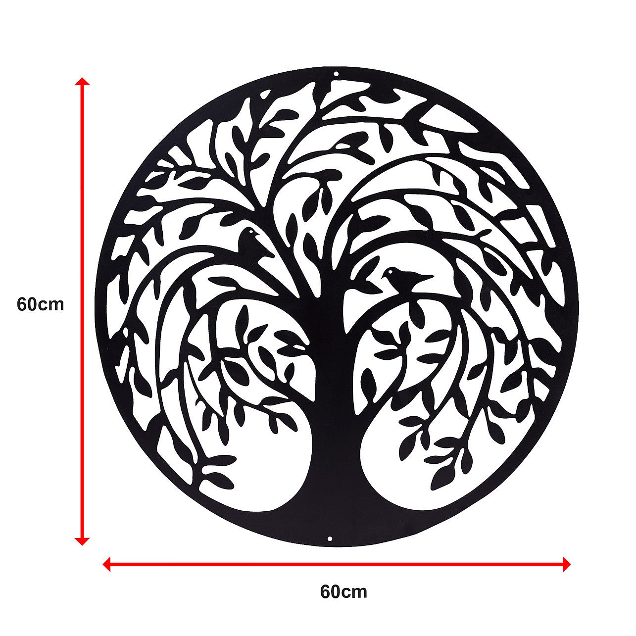 60cm Tree of Life & Birds Round Metal Wall Garden Art Sculpture