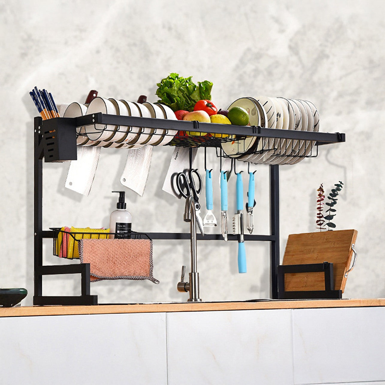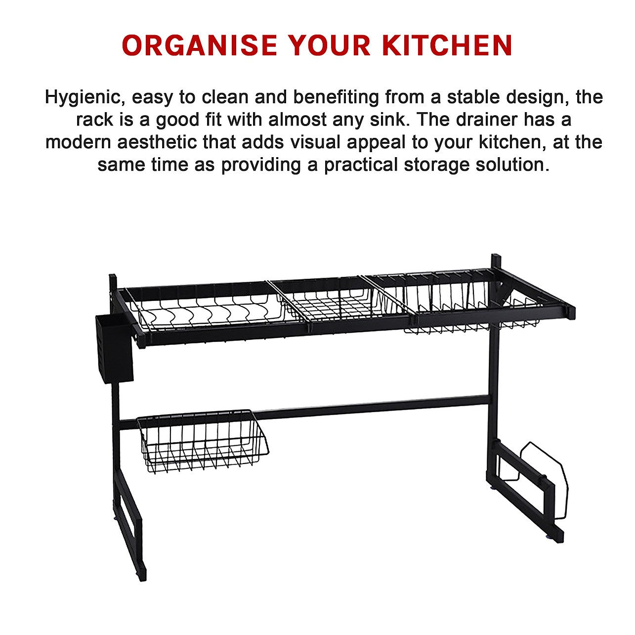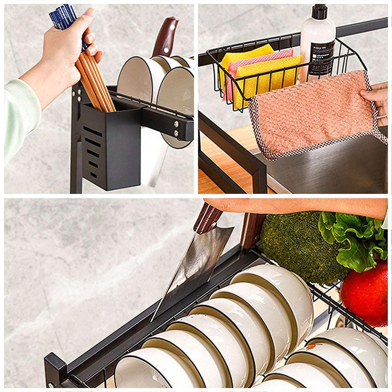 85cm Dish Drying Rack Drainer Over Sink Steel Cup Cutlery Organizer 2 Tier