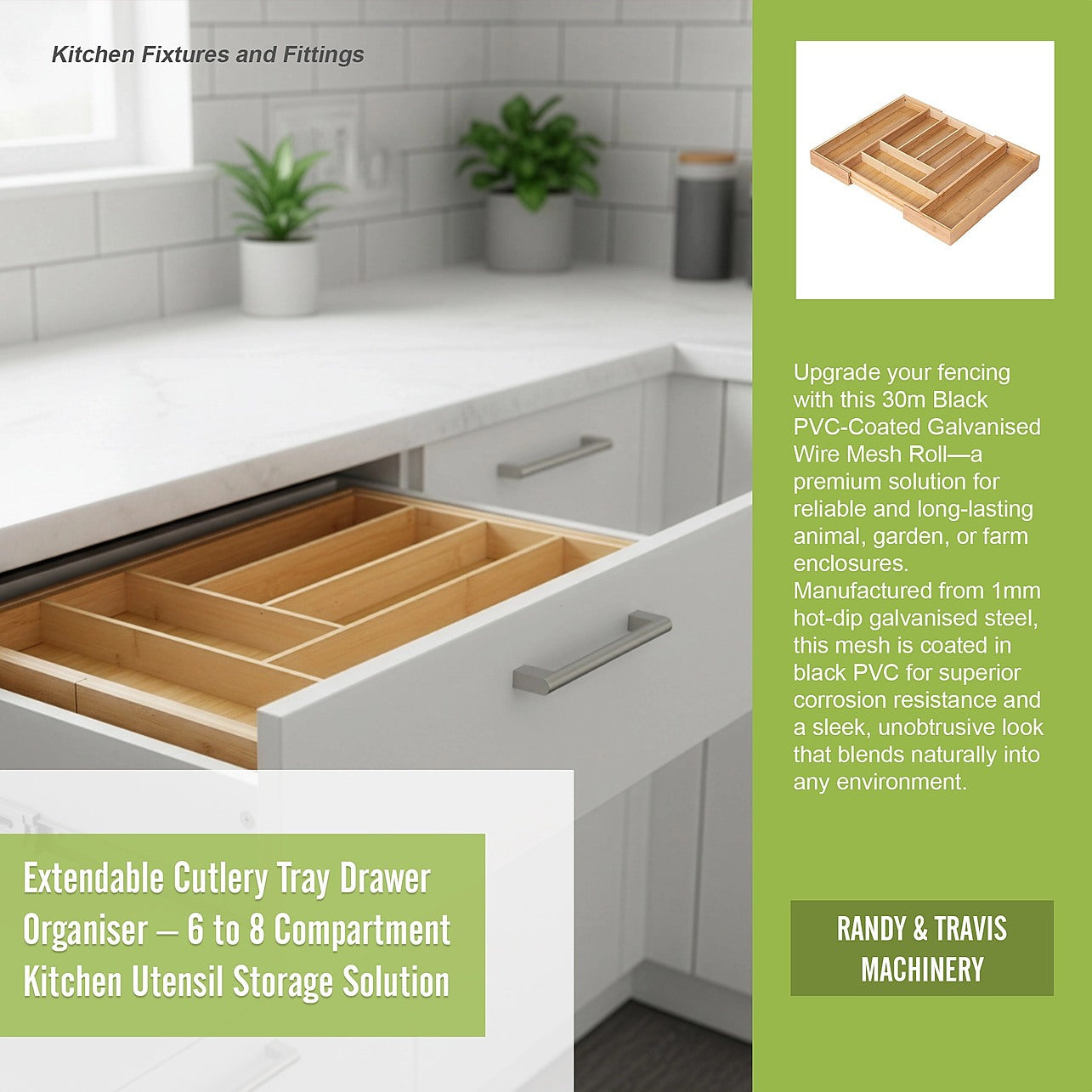 Declutter your kitchen and maximise drawer space with this Extendable Cutlery Tray Drawer Organiser, designed to fit a variety of drawer sizes. With 6 to 8 compartments and adjustable width (32–53cm), this organiser provides flexible, smart storage for your cutlery, utensils, and silverware.