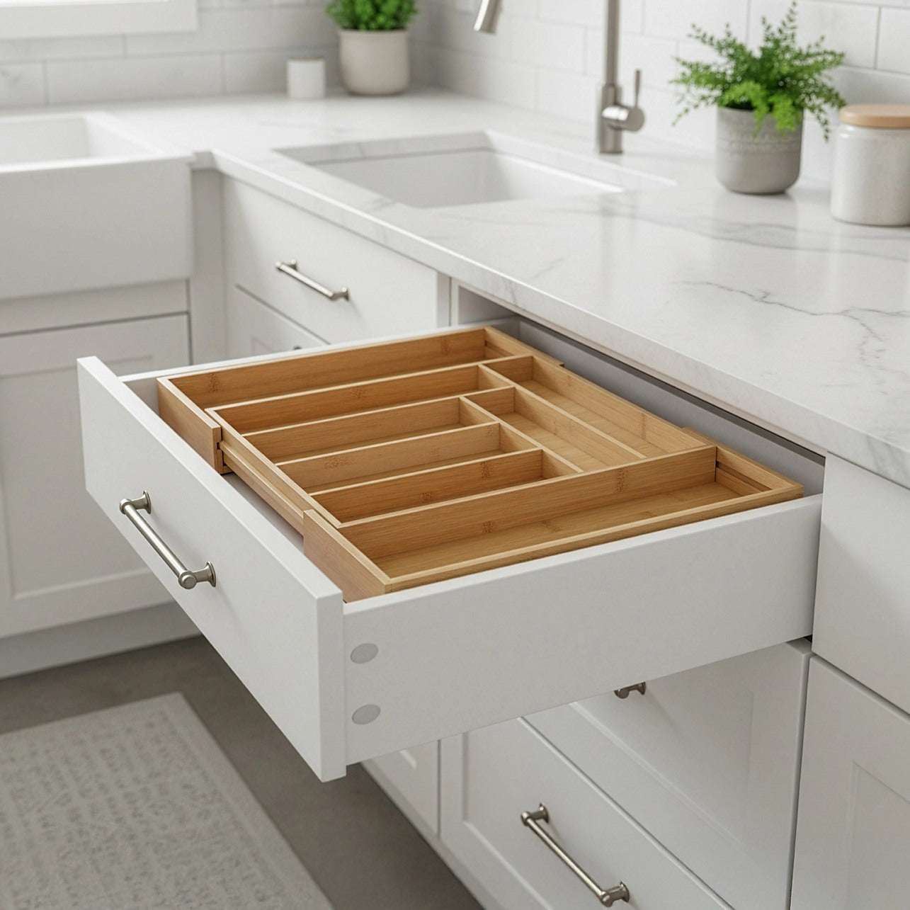 - Adjustable Width (32–53cm) – Expandable tray fits various drawer sizes