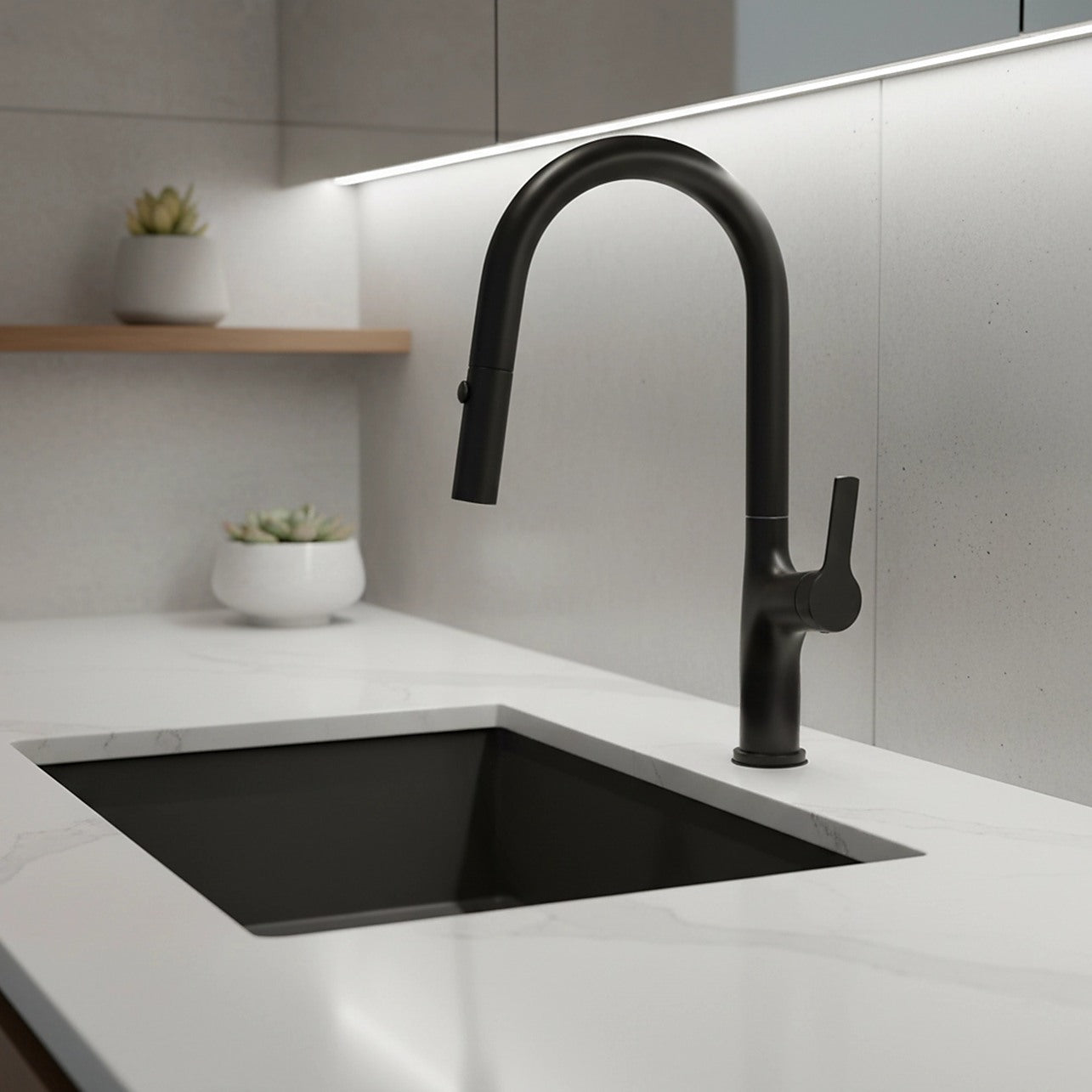 Crafted by Della Francesca, a trusted leader in top-quality plumbing products, this kitchen mixer is built to last with stainless steel body and a beautiful matte black finish. Its elegant design, featuring a long, sweeping neck and bold lines, makes it a perfect fit for almost any kitchen. But it's not just about aesthetics—thanks to its flexible neck, the faucet head can be easily pulled out for added convenience and flexibility while tackling dishes and other chores. Switching back to a traditional mixer is a breeze too.