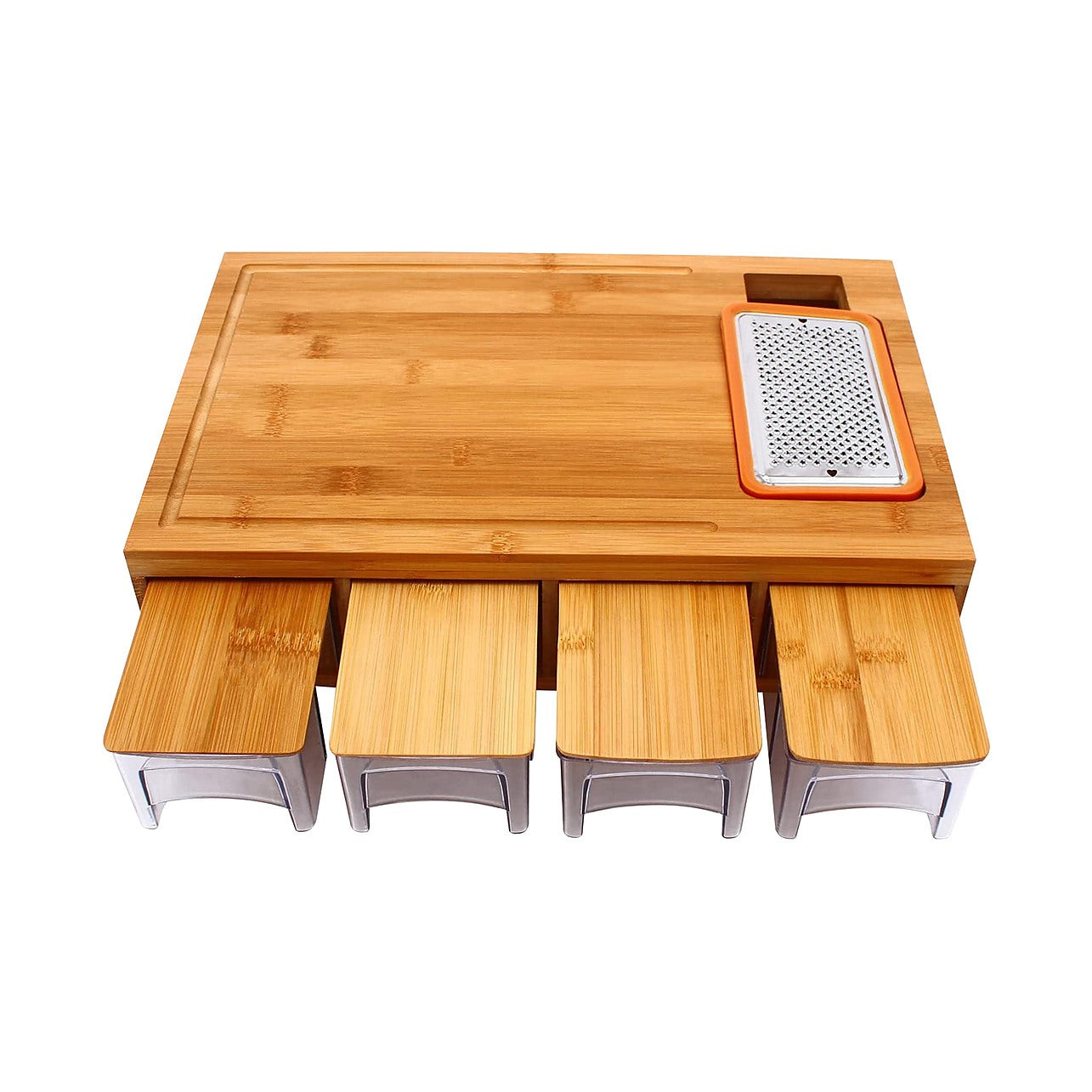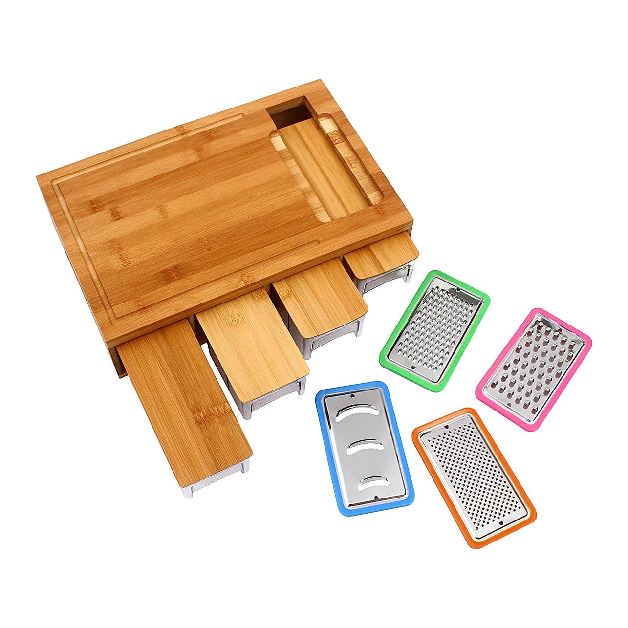 Bamboo Cutting Board Set with Graters & Containers – Food Prep Station