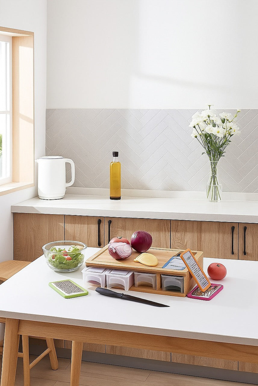 This all-in-one bamboo chopping board set is a must-have for any Aussie kitchen, combining style, practicality, and space-saving efficiency.