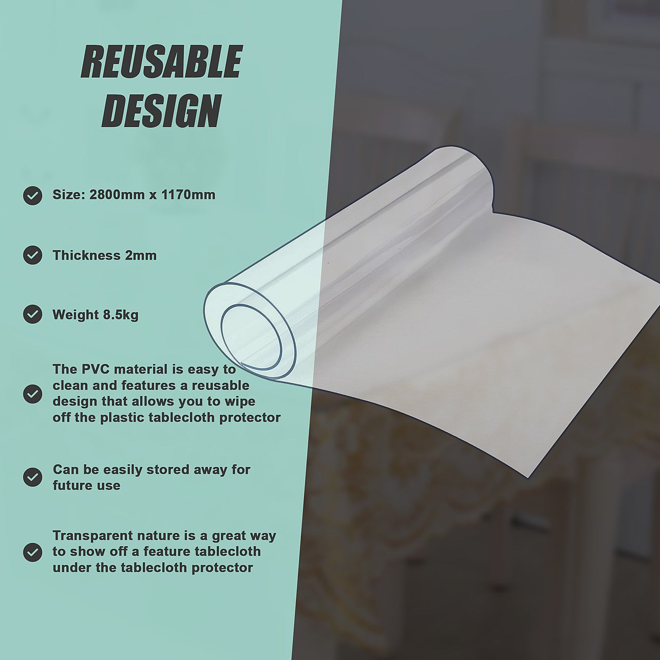 PVC Tablecloth Protector Table Cover Dining Table Cloth Plastic 2800x1170mm 2.0mm