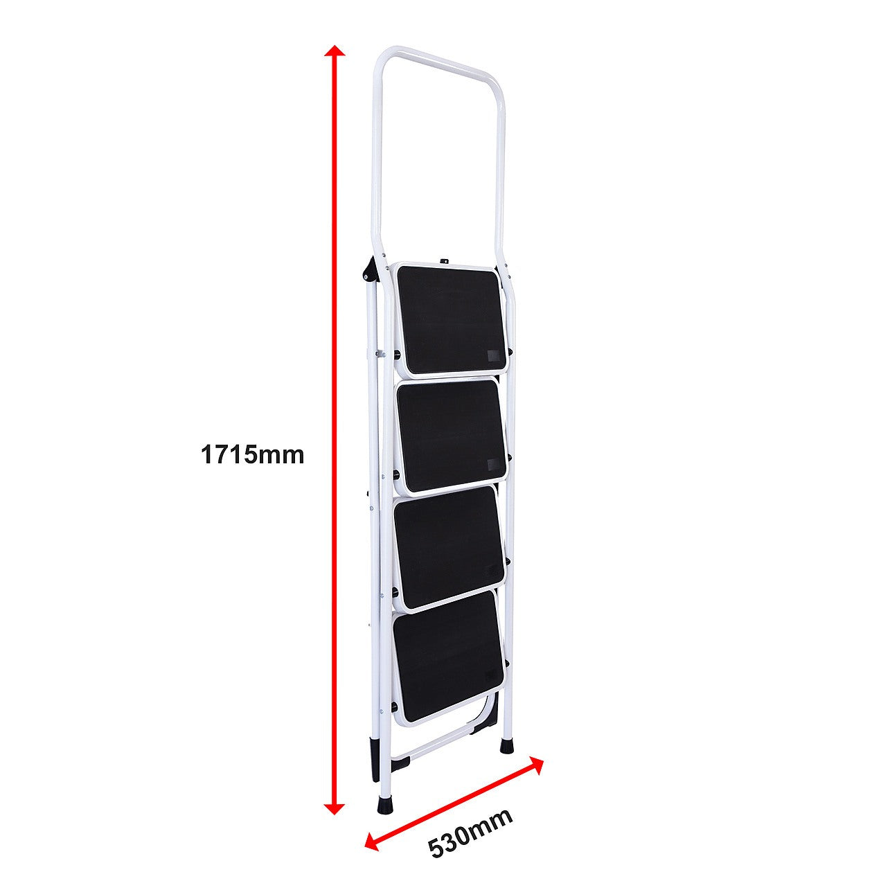 {"id":7850417488112,"title":"Foldable Non Slip 4 Step Steel Ladder","handle":"foldable-non-slip-4-step-steel-ladder","description":"\u003cp\u003eThis foldable non-slip step-ladder is reliable and a must-have around the house or office.\u003c\/p\u003e\r\n\r\n\u003cp\u003eSafety features of this four-step ladder include non-slip steps with rubber surfaces and dual handrails. The step-ladder is foldable and lightweight and can be easily stowed away in a handy spot for quick access. You'll be surprised how often you'll need to use this great step-ladder for household chores.\u003c\/p\u003e\r\n\r\n\u003cp\u003e\u003cstrong\u003eFeatures:\u003c\/strong\u003e\u003c\/p\u003e\r\n\r\n\u003cul\u003e\r\n\t\u003cli\u003eLightweight \u003c\/li\u003e\r\n\t\u003cli\u003eRugged steel frame\u003c\/li\u003e\r\n\t\u003cli\u003eSafe and sturdy 4-step\u003c\/li\u003e\r\n\t\u003cli\u003eNon-slip rubber steps\u003c\/li\u003e\r\n\t\u003cli\u003eDual hand-rails\u003c\/li\u003e\r\n\t\u003cli\u003eFoldable\u003c\/li\u003e\r\n\t\u003cli\u003eEasily stored away\u003c\/li\u003e\r\n\u003c\/ul\u003e\r\n\r\n\u003cp\u003e\u003cstrong\u003eSpecifications:\u003c\/strong\u003e\u003c\/p\u003e\r\n\r\n\u003cul\u003e\r\n\t\u003cli\u003eOpen dimension: 1590 x 530 x 815mm\u003c\/li\u003e\r\n\t\u003cli\u003eClosed dimension: 1715 x 530 x 105mm\u003c\/li\u003e\r\n\t\u003cli\u003eStep size: 380 x 260mm\u003c\/li\u003e\r\n\t\u003cli\u003e1.0 powder coated steel frame\u003c\/li\u003e\r\n\t\u003cli\u003eNet weight: 10.9kg\u003c\/li\u003e\r\n\t\u003cli\u003eGross weight: 12.0kg\u003c\/li\u003e\r\n\t\u003cli\u003eDistance from the ground to top step (when product is open): approximately 96.5cm\u003c\/li\u003e\r\n\t\u003cli\u003eEach step has weight capacity of 150kg\u003c\/li\u003e\r\n\u003c\/ul\u003e\r\n","published_at":"2025-03-20T18:22:03+11:00","created_at":"2022-02-25T18:09:57+11:00","vendor":"Randy \u0026 Travis Machinery","type":"","tags":["Colour_Other"],"price":34495,"price_min":34495,"price_max":34495,"available":true,"price_varies":false,"compare_at_price":34495,"compare_at_price_min":34495,"compare_at_price_max":34495,"compare_at_price_varies":false,"variants":[{"id":42469581324528,"title":"Default Title","option1":"Default Title","option2":null,"option3":null,"sku":"NWC-4SL-246","requires_shipping":true,"taxable":true,"featured_image":null,"available":true,"name":"Foldable Non Slip 4 Step Steel Ladder","public_title":null,"options":["Default Title"],"price":34495,"weight":20900,"compare_at_price":34495,"inventory_management":"shopify","barcode":"9356516006045","requires_selling_plan":false,"selling_plan_allocations":[],"quantity_rule":{"min":1,"max":null,"increment":1}}],"images":["\/\/serranoaustralia.com.au\/cdn\/shop\/files\/b762eaa1fbfe7f2219b5f776e425c231.jpg?v=1764577927","\/\/serranoaustralia.com.au\/cdn\/shop\/files\/fedb20ad05456a498e1b3bd893d166a9.png?v=1764577928","\/\/serranoaustralia.com.au\/cdn\/shop\/files\/d15199f8bf0cbd5d8559bb4e92ce59c9.jpg?v=1764577928","\/\/serranoaustralia.com.au\/cdn\/shop\/files\/d06d7994b5b443d4d31e34dfee8fa623.jpg?v=1764577930","\/\/serranoaustralia.com.au\/cdn\/shop\/files\/b7a419537e61ae602688ec4d291aa93d.png?v=1764577928","\/\/serranoaustralia.com.au\/cdn\/shop\/files\/539507f33c96c8796ac9116fd3870787.jpg?v=1764577931","\/\/serranoaustralia.com.au\/cdn\/shop\/files\/de936bf2a57a92b890986e98d30ac649.png?v=1742788034","\/\/serranoaustralia.com.au\/cdn\/shop\/files\/021b000175e3fc7d3b5db7e4a3779a66.png?v=1742788038","\/\/serranoaustralia.com.au\/cdn\/shop\/files\/2e6b1da85c8f43a180efd6693ecdd045.jpg?v=1764577933","\/\/serranoaustralia.com.au\/cdn\/shop\/files\/66263c00a16567f045bf8f4b028243bd.jpg?v=1764577934","\/\/serranoaustralia.com.au\/cdn\/shop\/files\/d168659395ccbe93dd5d94eec41adee6.jpg?v=1764577935","\/\/serranoaustralia.com.au\/cdn\/shop\/files\/4858273d6bf060a181425bb48c055bc8.jpg?v=1764577936","\/\/serranoaustralia.com.au\/cdn\/shop\/files\/f88533597b57367b925afaafd5af8fff.png?v=1764577936","\/\/serranoaustralia.com.au\/cdn\/shop\/files\/c1bf107fcdbb4e9c497e493ae7394bca.jpg?v=1764577936"],"featured_image":"\/\/serranoaustralia.com.au\/cdn\/shop\/files\/b762eaa1fbfe7f2219b5f776e425c231.jpg?v=1764577927","options":["Title"],"media":[{"alt":"Foldable Non Slip 4 Step Steel Ladder","id":42671125233904,"position":1,"preview_image":{"aspect_ratio":1.0,"height":1285,"width":1285,"src":"\/\/serranoaustralia.com.au\/cdn\/shop\/files\/b762eaa1fbfe7f2219b5f776e425c231.jpg?v=1764577927"},"aspect_ratio":1.0,"height":1285,"media_type":"image","src":"\/\/serranoaustralia.com.au\/cdn\/shop\/files\/b762eaa1fbfe7f2219b5f776e425c231.jpg?v=1764577927","width":1285},{"alt":"Foldable Non Slip 4 Step Steel Ladder","id":39037128245488,"position":2,"preview_image":{"aspect_ratio":1.0,"height":1285,"width":1285,"src":"\/\/serranoaustralia.com.au\/cdn\/shop\/files\/fedb20ad05456a498e1b3bd893d166a9.png?v=1764577928"},"aspect_ratio":1.0,"height":1285,"media_type":"image","src":"\/\/serranoaustralia.com.au\/cdn\/shop\/files\/fedb20ad05456a498e1b3bd893d166a9.png?v=1764577928","width":1285},{"alt":"Foldable Non Slip 4 Step Steel Ladder","id":39037127786736,"position":3,"preview_image":{"aspect_ratio":1.0,"height":1285,"width":1285,"src":"\/\/serranoaustralia.com.au\/cdn\/shop\/files\/d15199f8bf0cbd5d8559bb4e92ce59c9.jpg?v=1764577928"},"aspect_ratio":1.0,"height":1285,"media_type":"image","src":"\/\/serranoaustralia.com.au\/cdn\/shop\/files\/d15199f8bf0cbd5d8559bb4e92ce59c9.jpg?v=1764577928","width":1285},{"alt":"Foldable Non Slip 4 Step Steel Ladder","id":42671125266672,"position":4,"preview_image":{"aspect_ratio":1.0,"height":1285,"width":1285,"src":"\/\/serranoaustralia.com.au\/cdn\/shop\/files\/d06d7994b5b443d4d31e34dfee8fa623.jpg?v=1764577930"},"aspect_ratio":1.0,"height":1285,"media_type":"image","src":"\/\/serranoaustralia.com.au\/cdn\/shop\/files\/d06d7994b5b443d4d31e34dfee8fa623.jpg?v=1764577930","width":1285},{"alt":"Foldable Non Slip 4 Step Steel Ladder","id":39037128114416,"position":5,"preview_