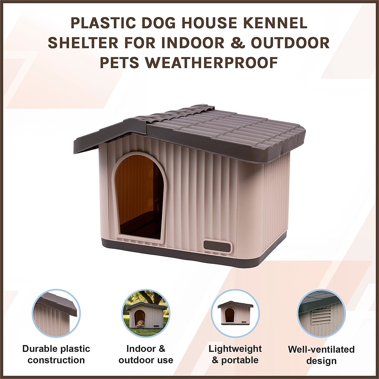 Plastic Dog House Kennel Shelter for Indoor & Outdoor Pets, Weatherproof
